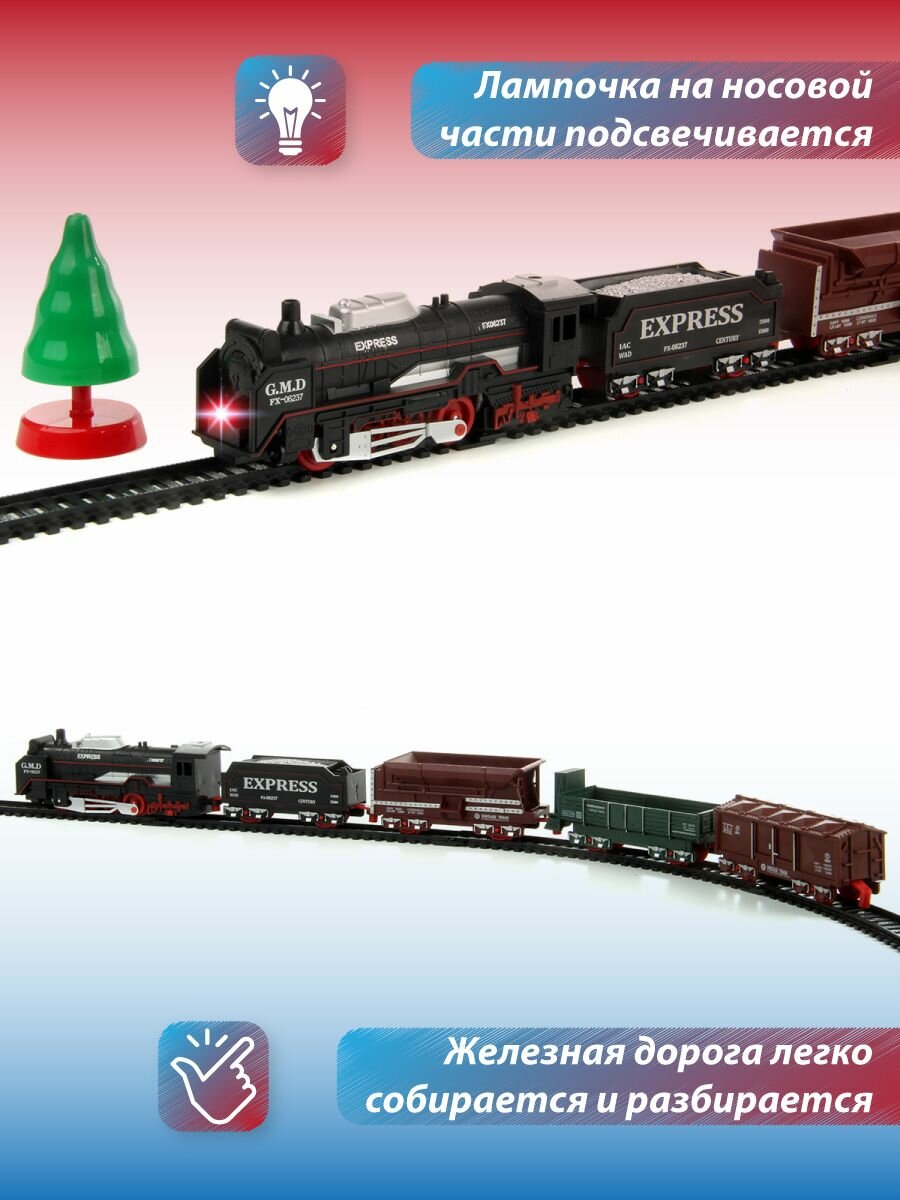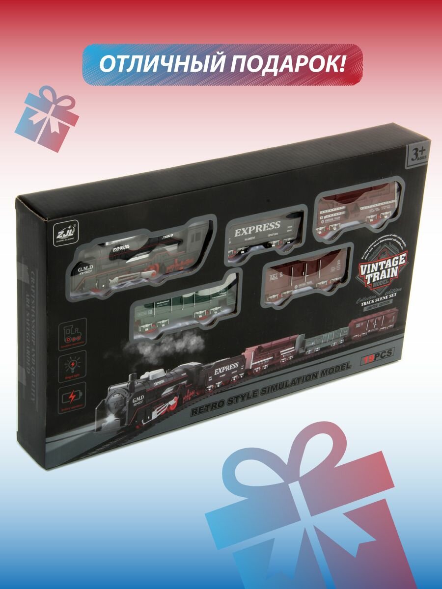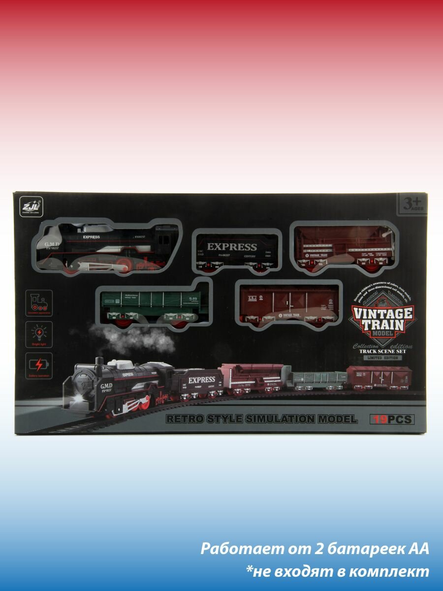 Купить Железная дорога детская "Ретро" Veld Co, 19 деталей / Поезд игрушка с вагонами со светом, на батарейках