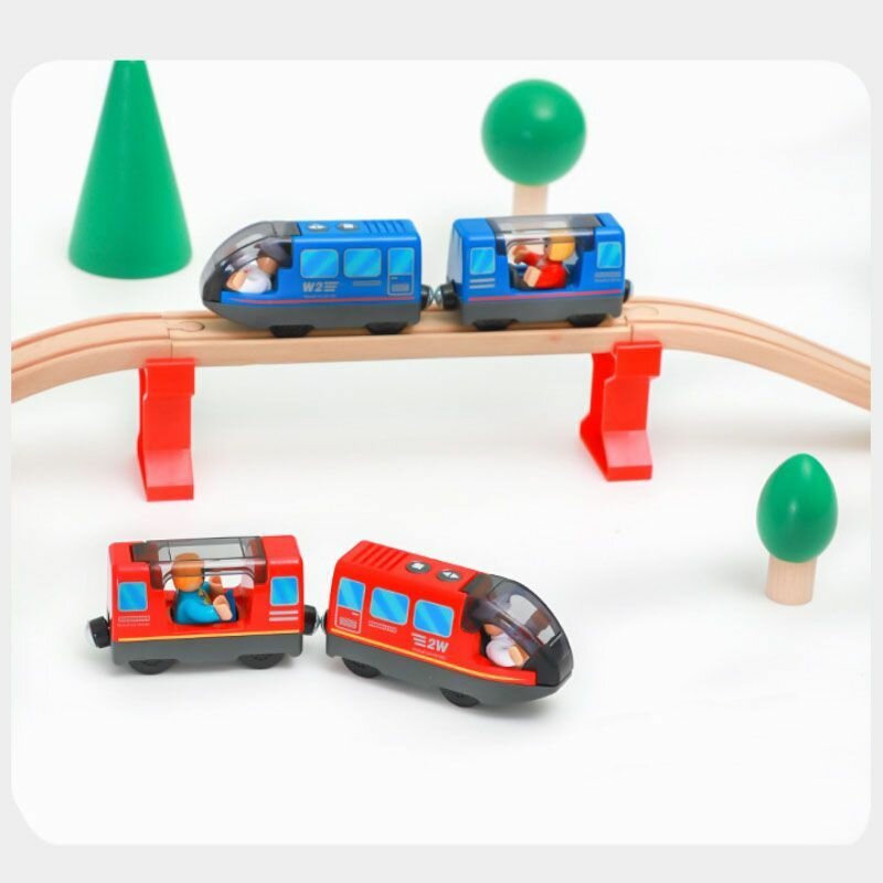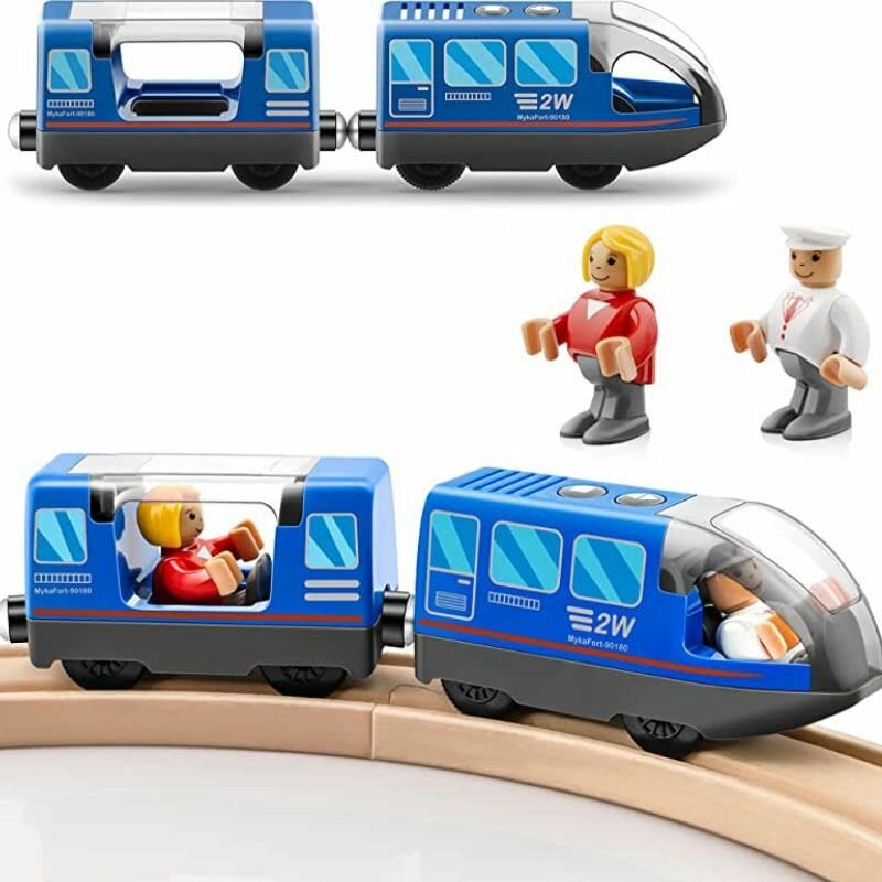 Электропоезд на батарейках для деревянной железной дороги, паровоз электрический с пассажирским вагоном