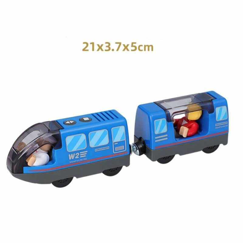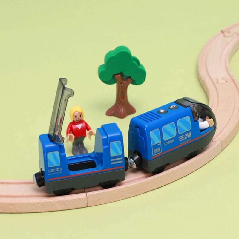 Купить Электропоезд на батарейках для деревянной железной дороги, паровоз электрический с пассажирским вагоном синий