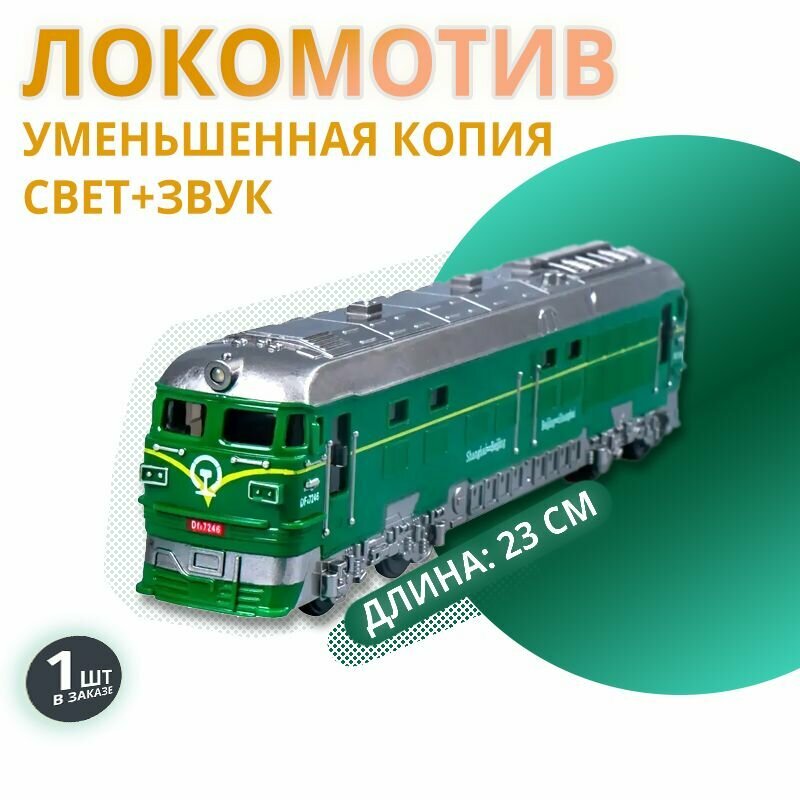 Купить Локомотив со светом и звуком зеленый в подарок игрушка для мальчика