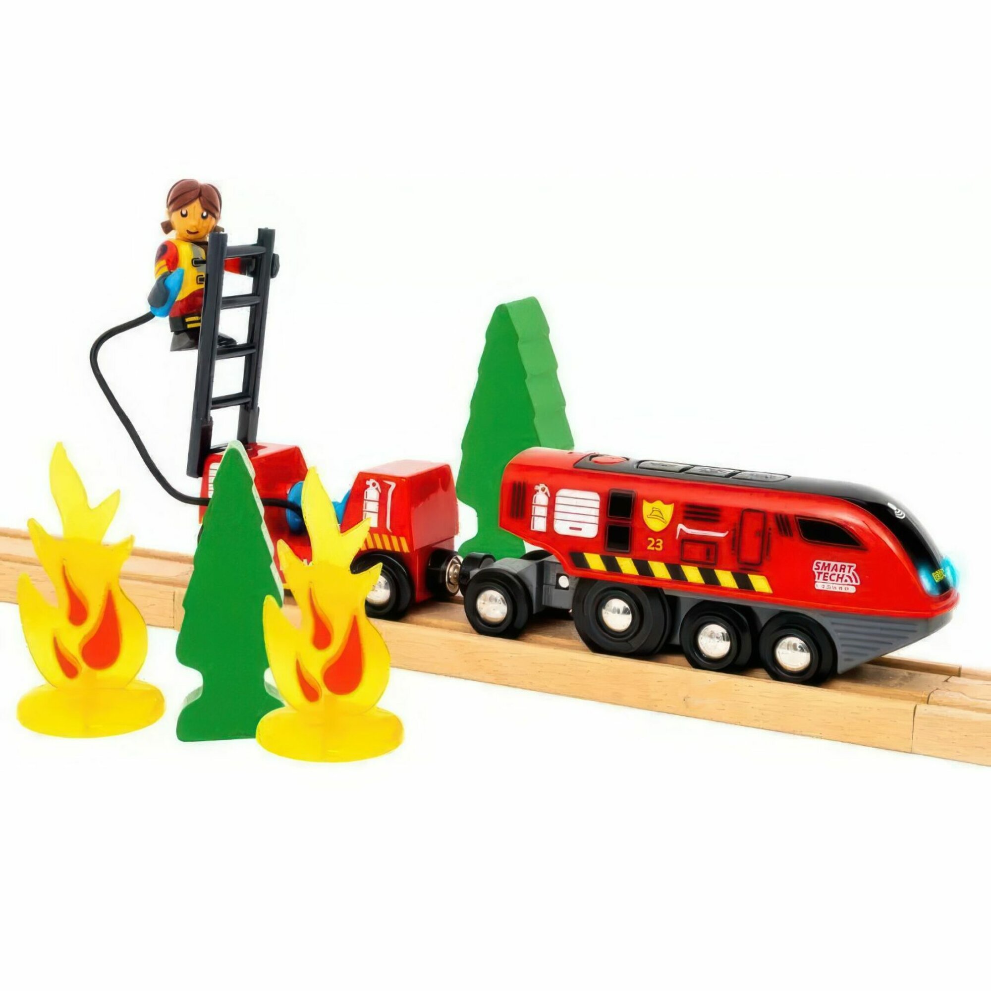 Деревянная железная дорога BRIO "Пожарный спасатель", звук, 41 деталь интересное: