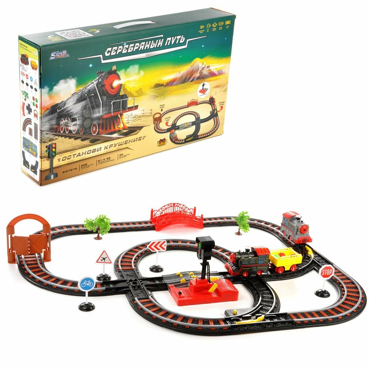 Купить Железная дорога "Серебряный путь - Останови крушение" со светом и звуком, 30 деталей