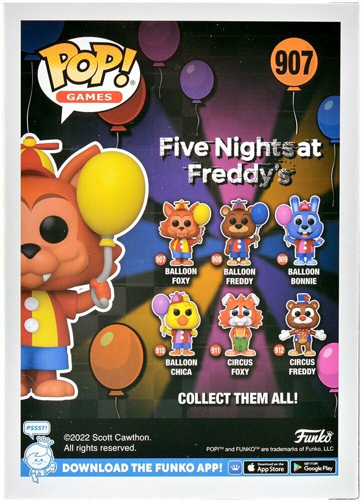 Ниже Вы можете прочитать отзывы на Фигурка Funko POP! Games: FNAF: Balloon Circus: Balloon Foxy 67627, ознакомится с подробными характеристиками, посмотреть интересные обзоры и фотографии на Фигурка Funko POP! Games: FNAF: Balloon Circus: Balloon Foxy 67627.