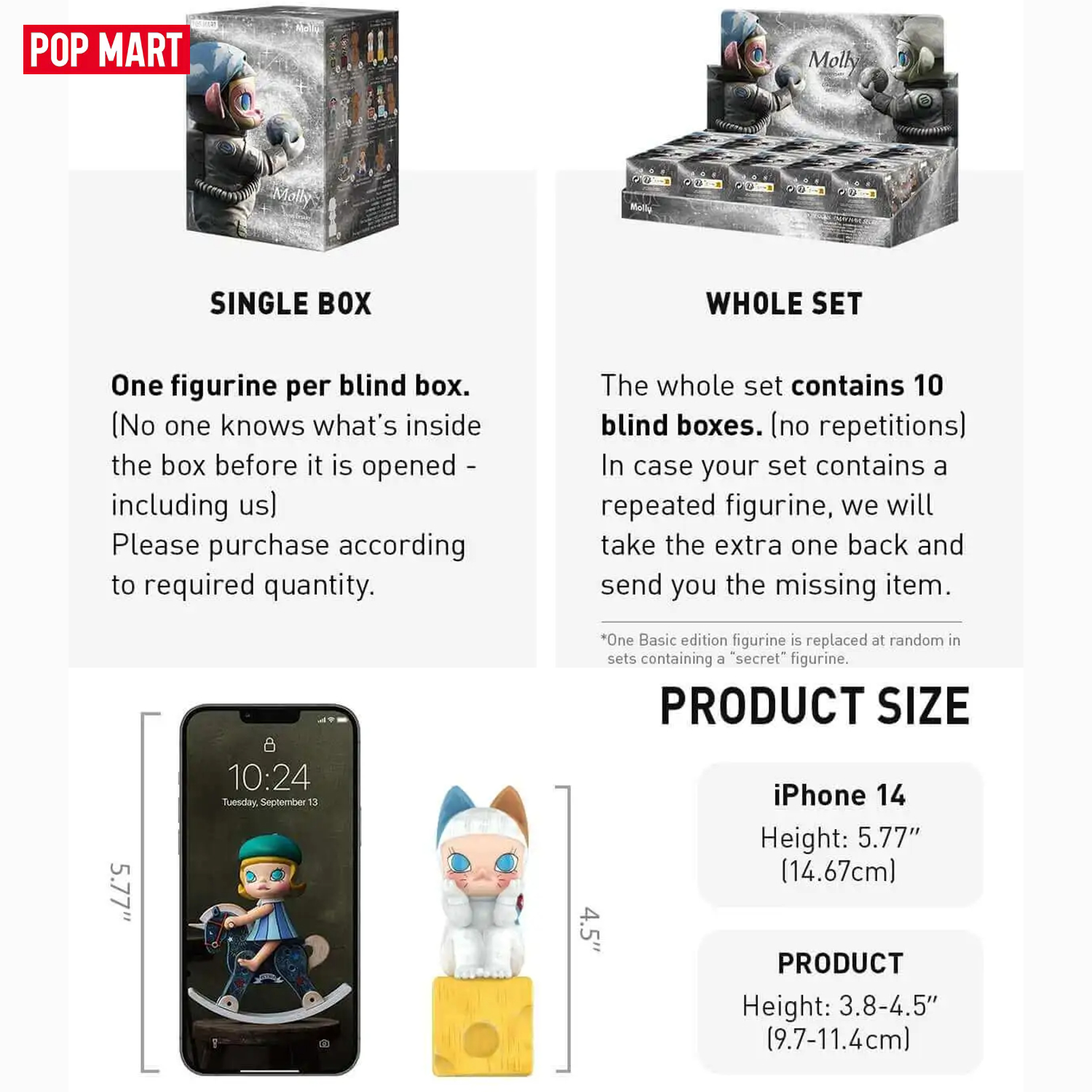 Коллекционная фигурка POP MART "Molly Anniversary Statues", пластик, 8x3x8 см