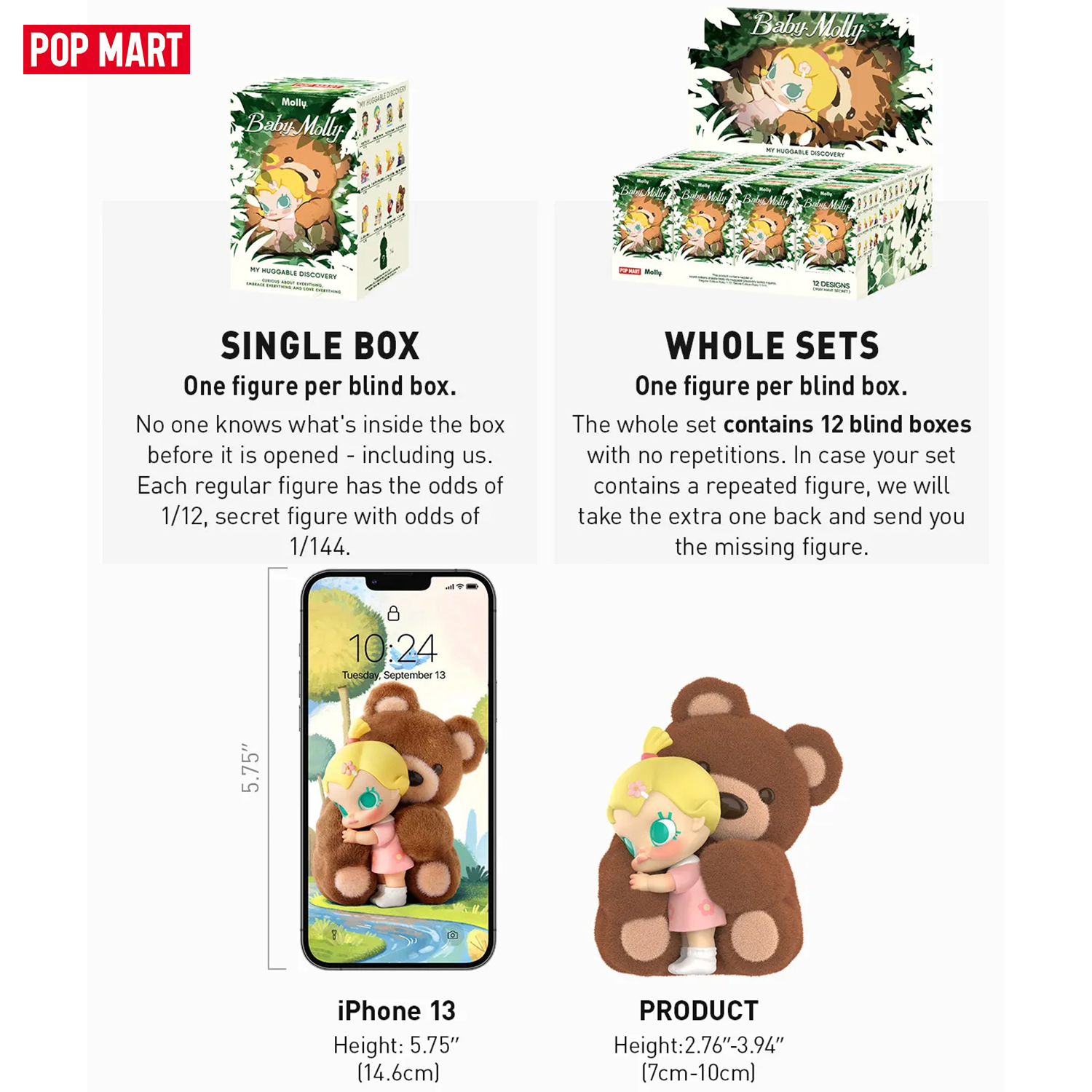 Купить Коллекционная фигурка Слепая коробка POP MART Baby Molly My Huggable Discovery Series Figures, унисекс, пластик,1 шт