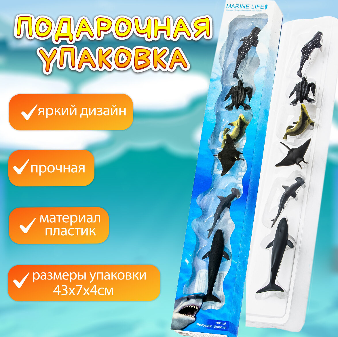 Фигурки детские коллекционные декоративные животных N 2 Эврика 8 шт, игровой набор Морской для мальчика и девочки, подарочный