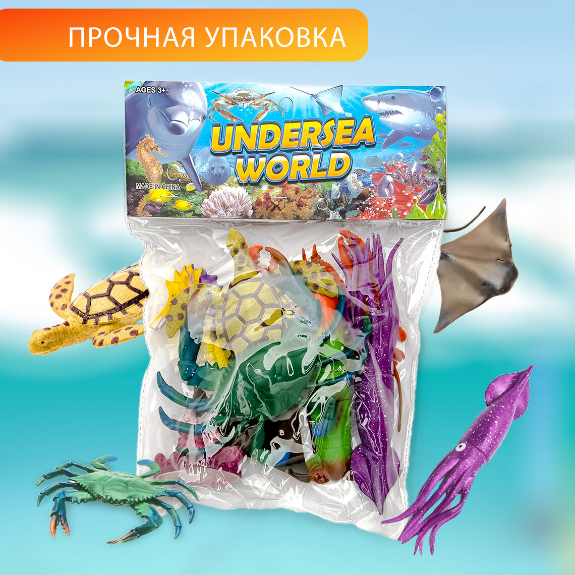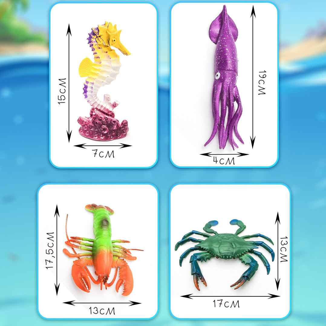 Фигурки детские коллекционные декоративные животных N 18 Эврика 6 шт, игровой набор Морской для мальчика и девочки, подарочный, играть в песке, воде