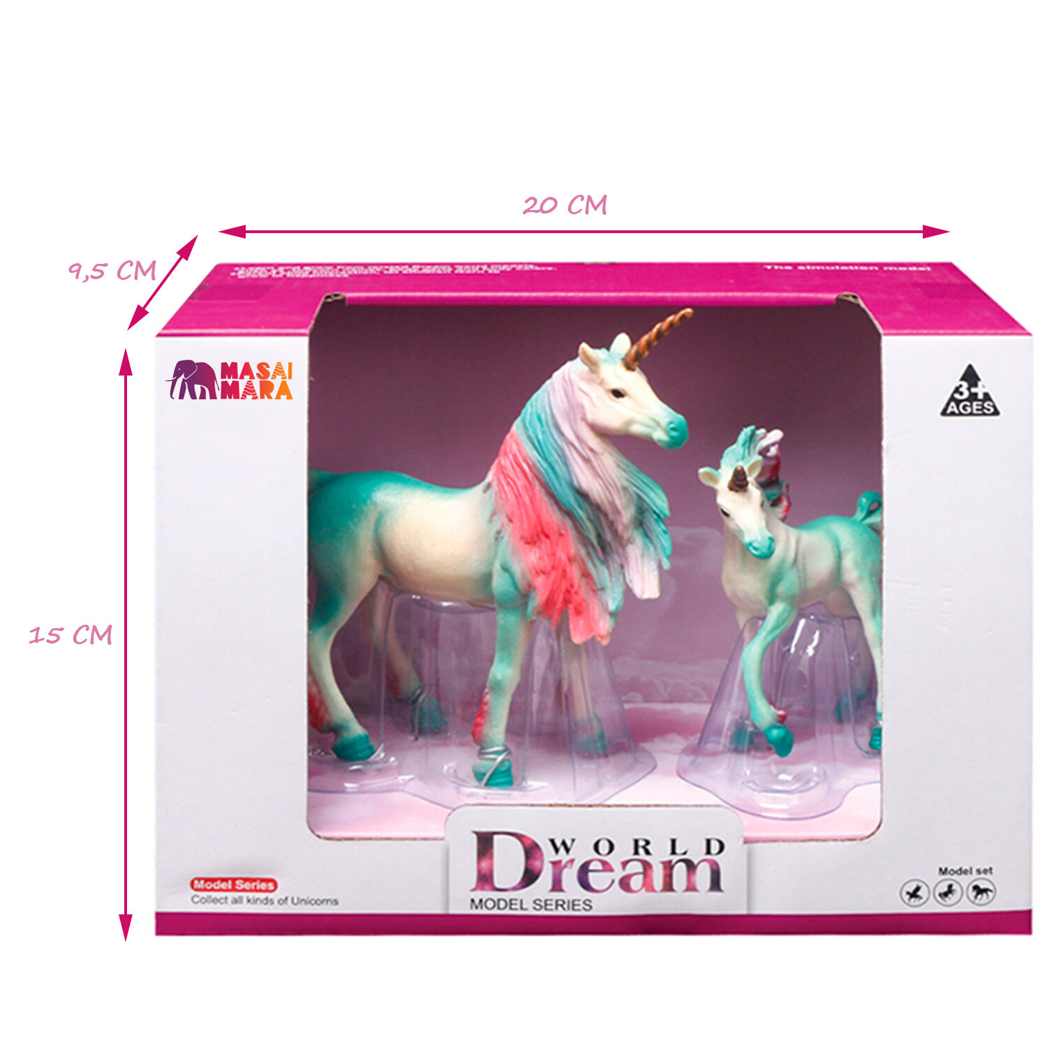 Набор фигурок серии "Мир фэнтези". Семья белых единорогов с зеленой гривой, 2 предмета (единорог и жеребенок-единорог)