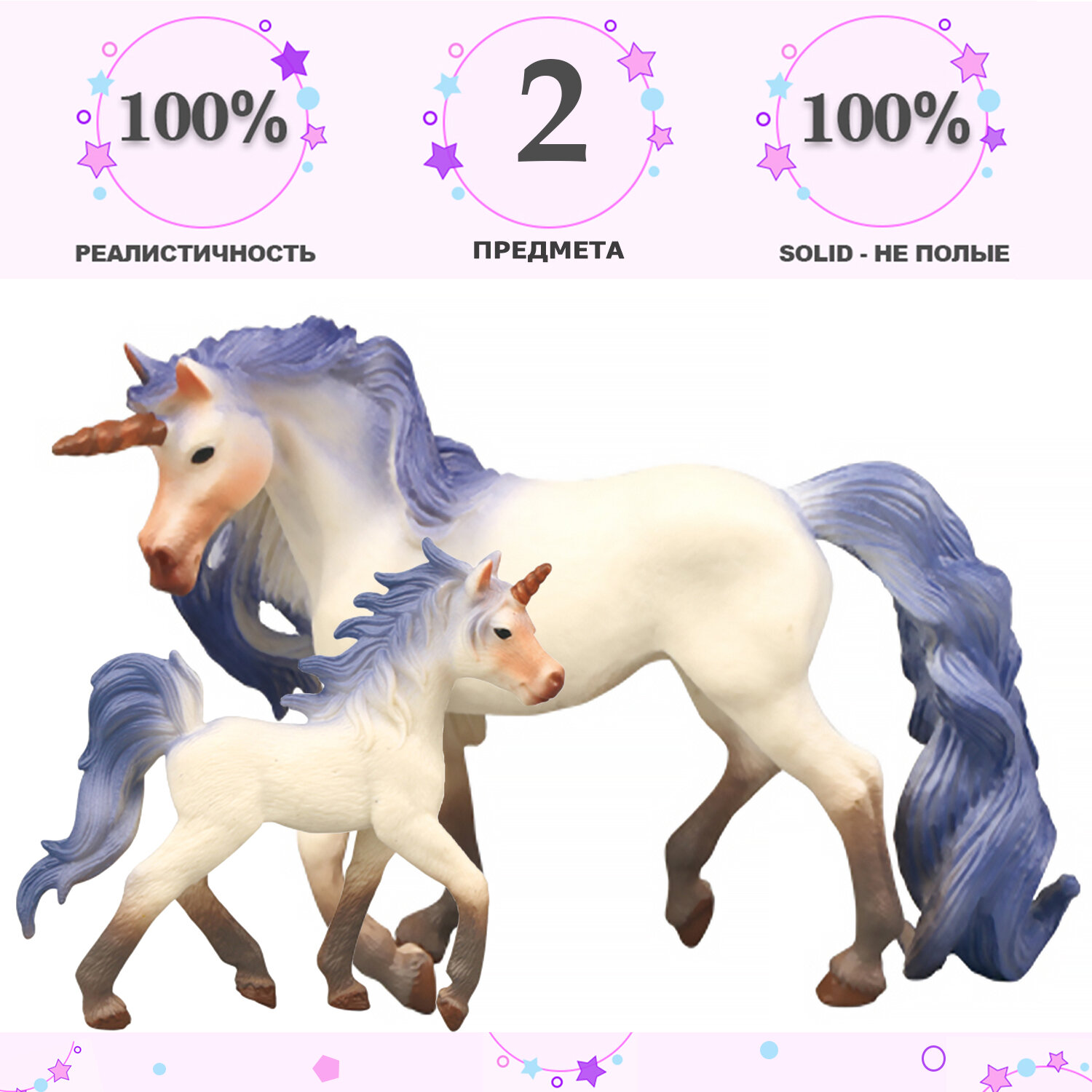 Набор фигурок животных серии "Мир фэнтези". Семья сиреневых единорогов, 2 предмета (единорог и жеребенок-единорог)
