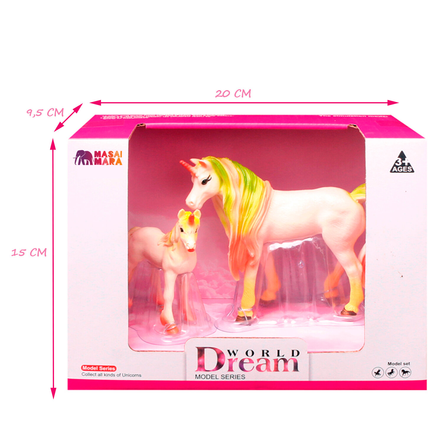 Набор фигурок животных серии "Мир фэнтези". Семья белых единорогов с радужной гривой, (единорог и жеребенок-единорог)
