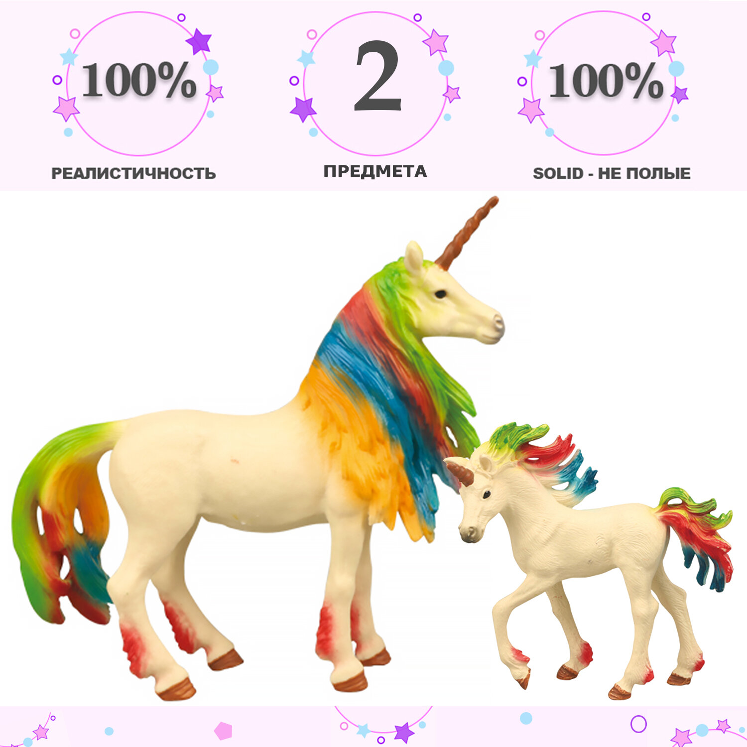 Купить Набор фигурок животных серии "Мир фэнтези". Семья белых единорогов с радужной гривой, (единорог и жеребенок-единорог)