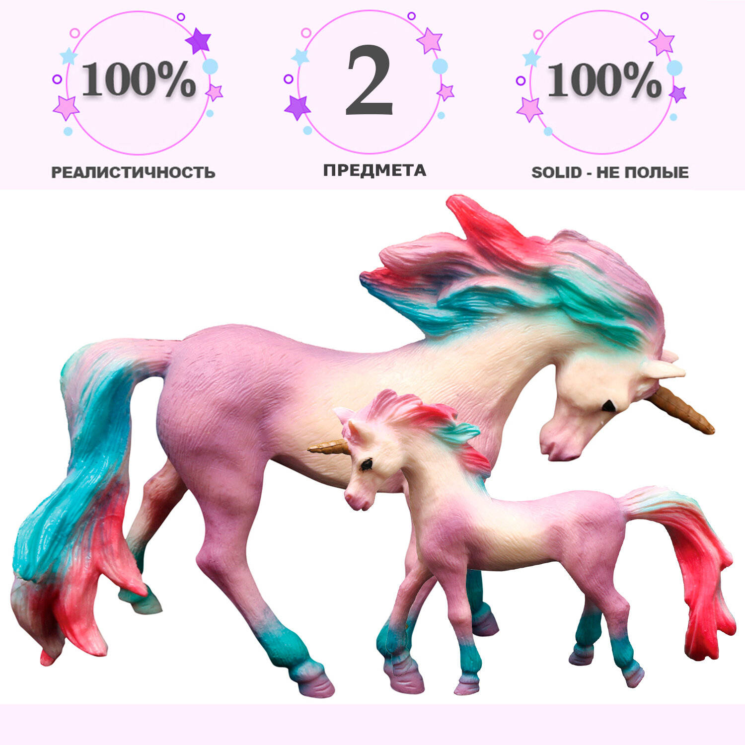 Купить Набор фигурок животных серии "Мир фэнтези". Семья сиреневых единорогов, 2 предмета (единорог и жеребенок-единорог)