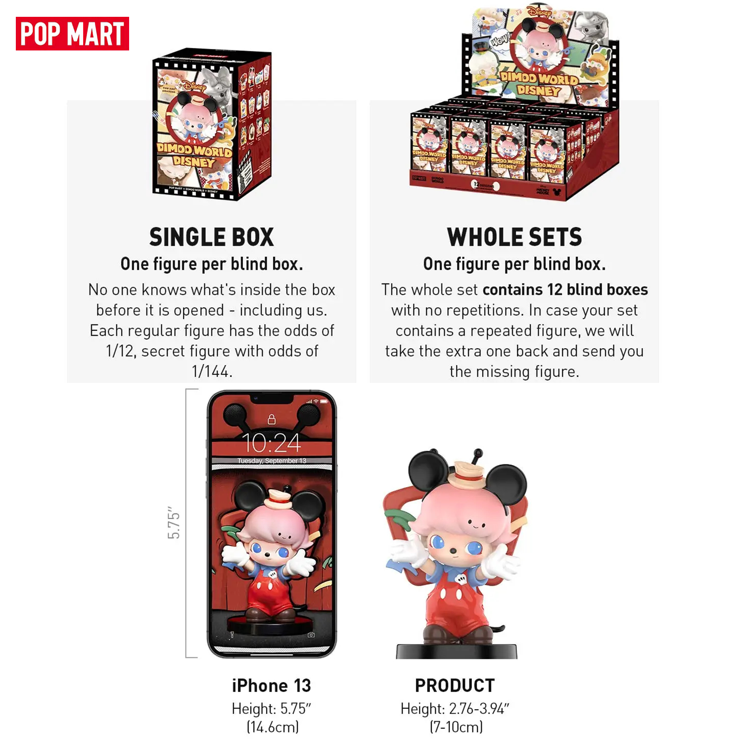 Купить Коллекционная фигурка Pop Mart "DIMOO World X Disney", игрушка-сюрприз, пластик, 8 см