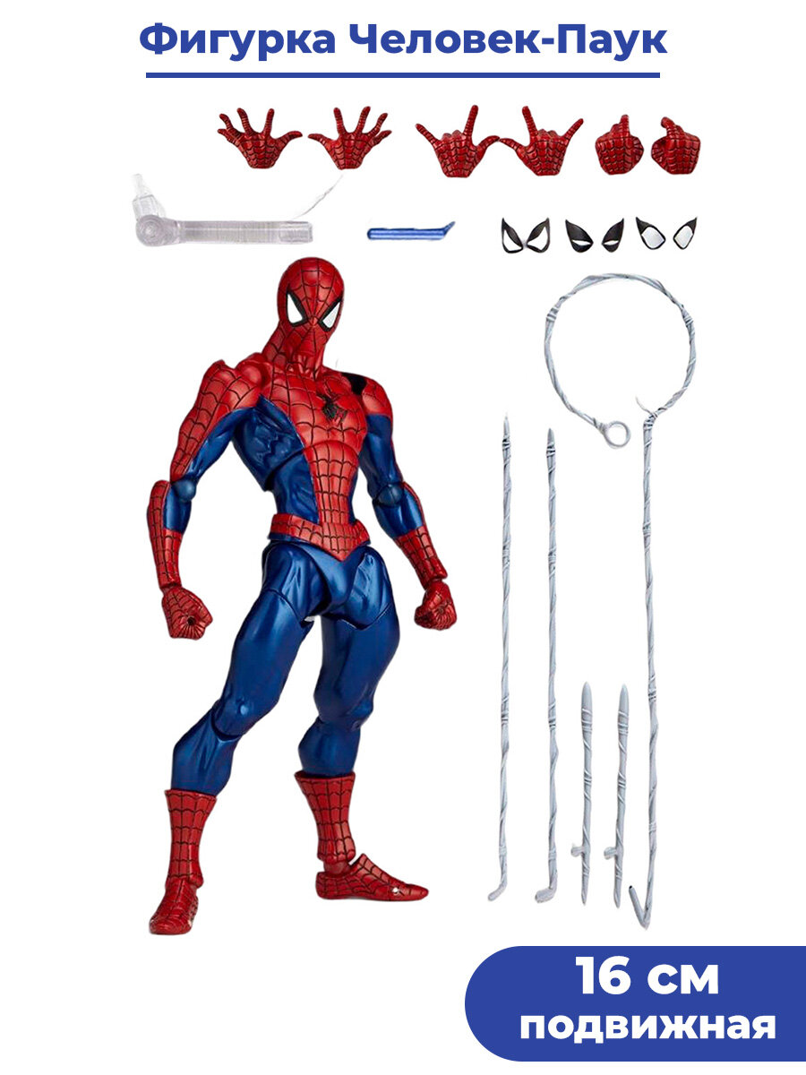 Фигурка Человек паук Spider man подвижная сменные кисти голова 16 см