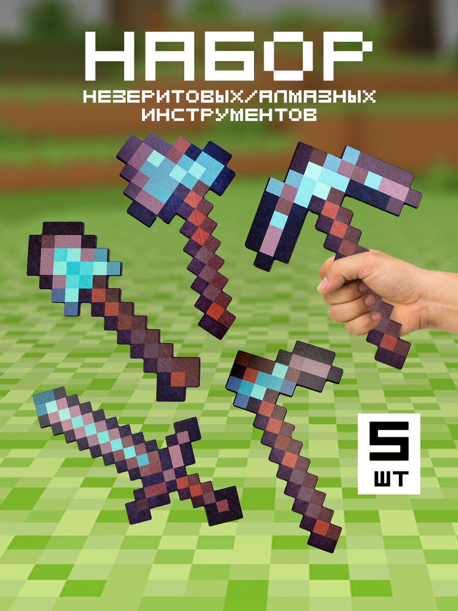 Набор незеритово - алмазных инструментов Майнкрафт 5 предметов интересное:
