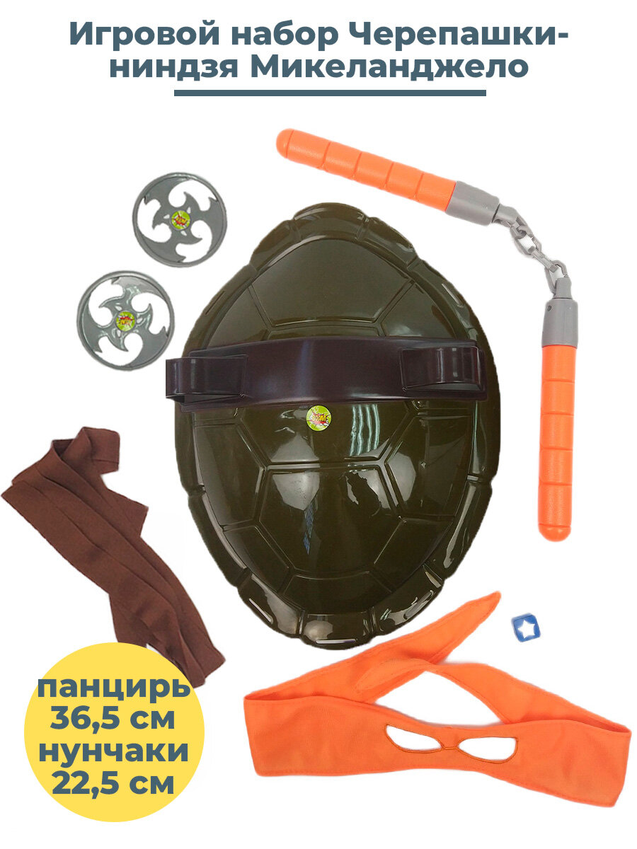Игровой набор Черепашки ниндзя Микеланджело TMNT Michelangelo панцирь оружие повязка интересное: