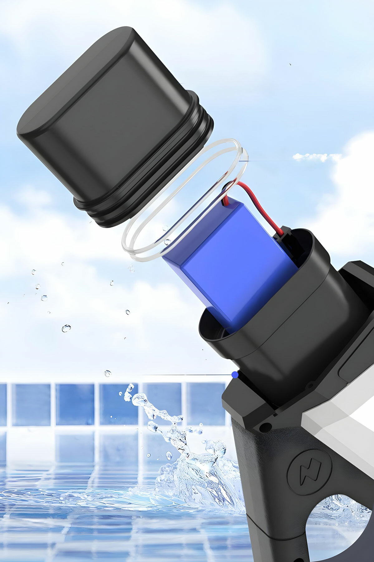 Водяной пистолет Gun Electric, с эффектом огня электрический, пластик, синий