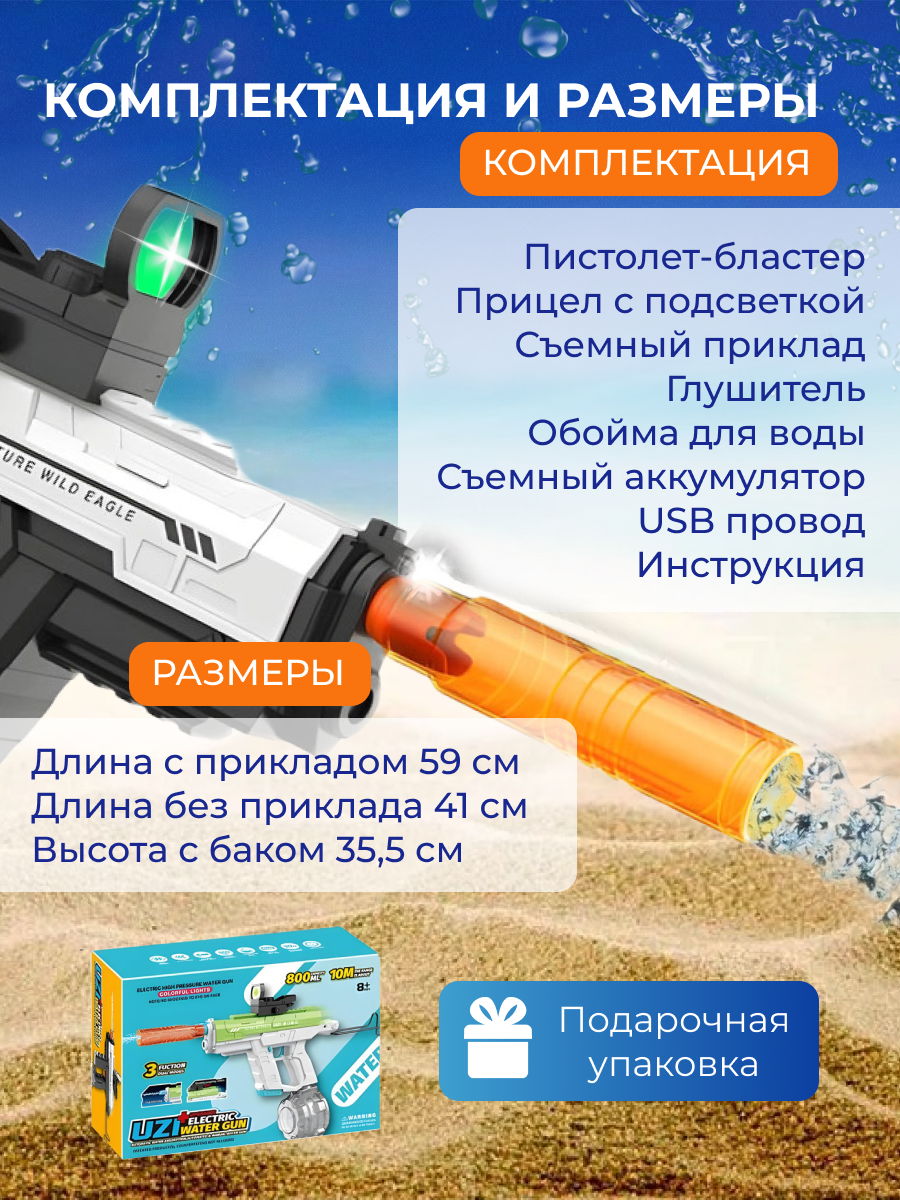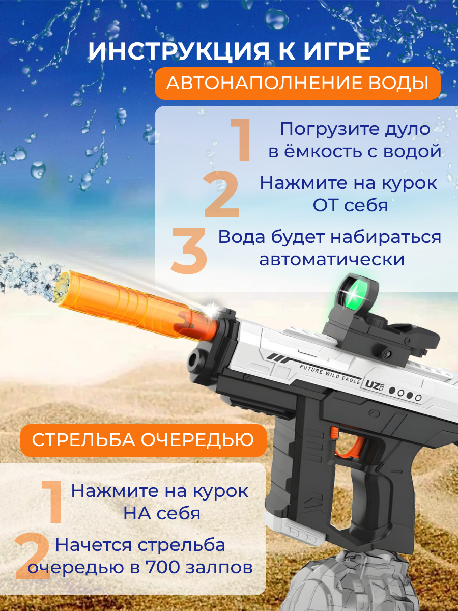 Водяной бластер электрический пистолет, белый, игрушечное оружие
