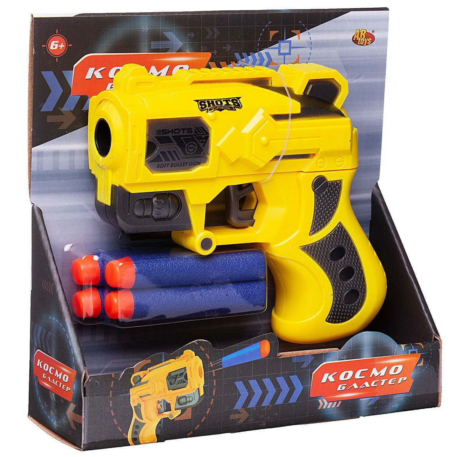 Бластер Abtoys Космобластер с 4 мягкими пулями, желтый PT-01661 интересное: