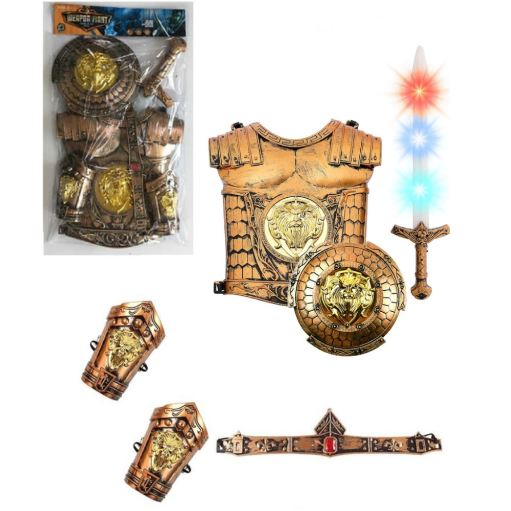 Игровой набор игрушечное оружие для мальчика костюм "Рыцарь" 5 предметов, меч, щит, накидка, защита, доспехи