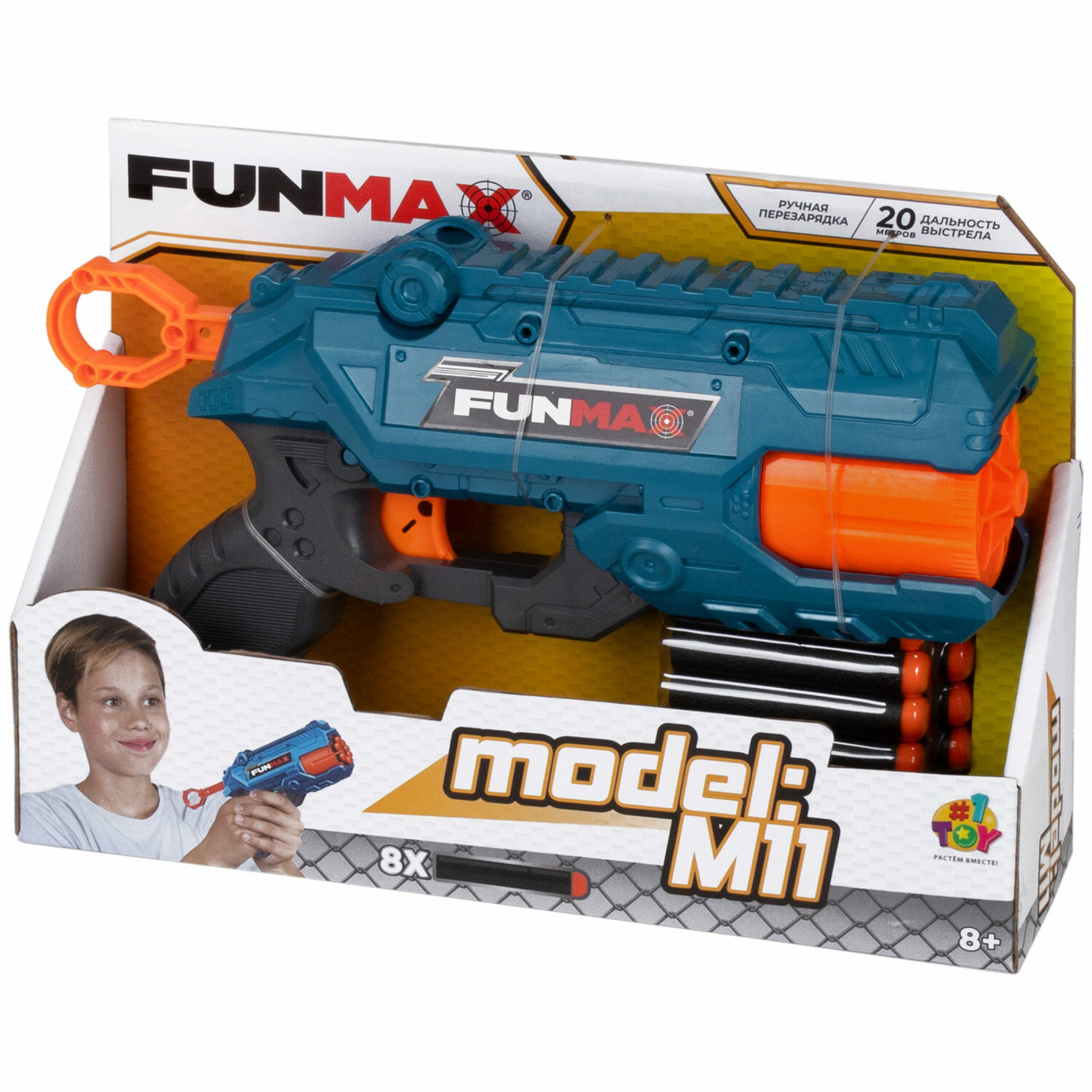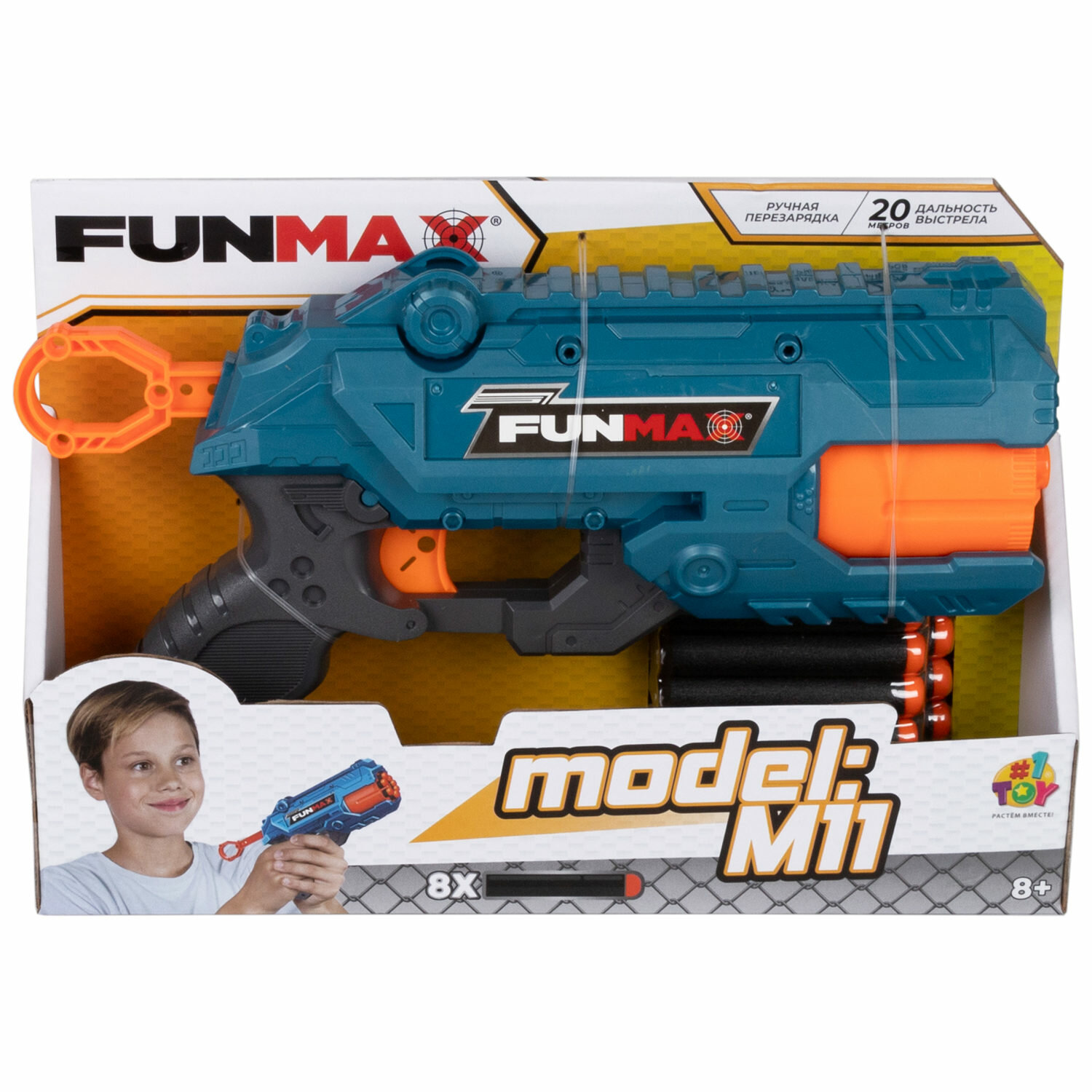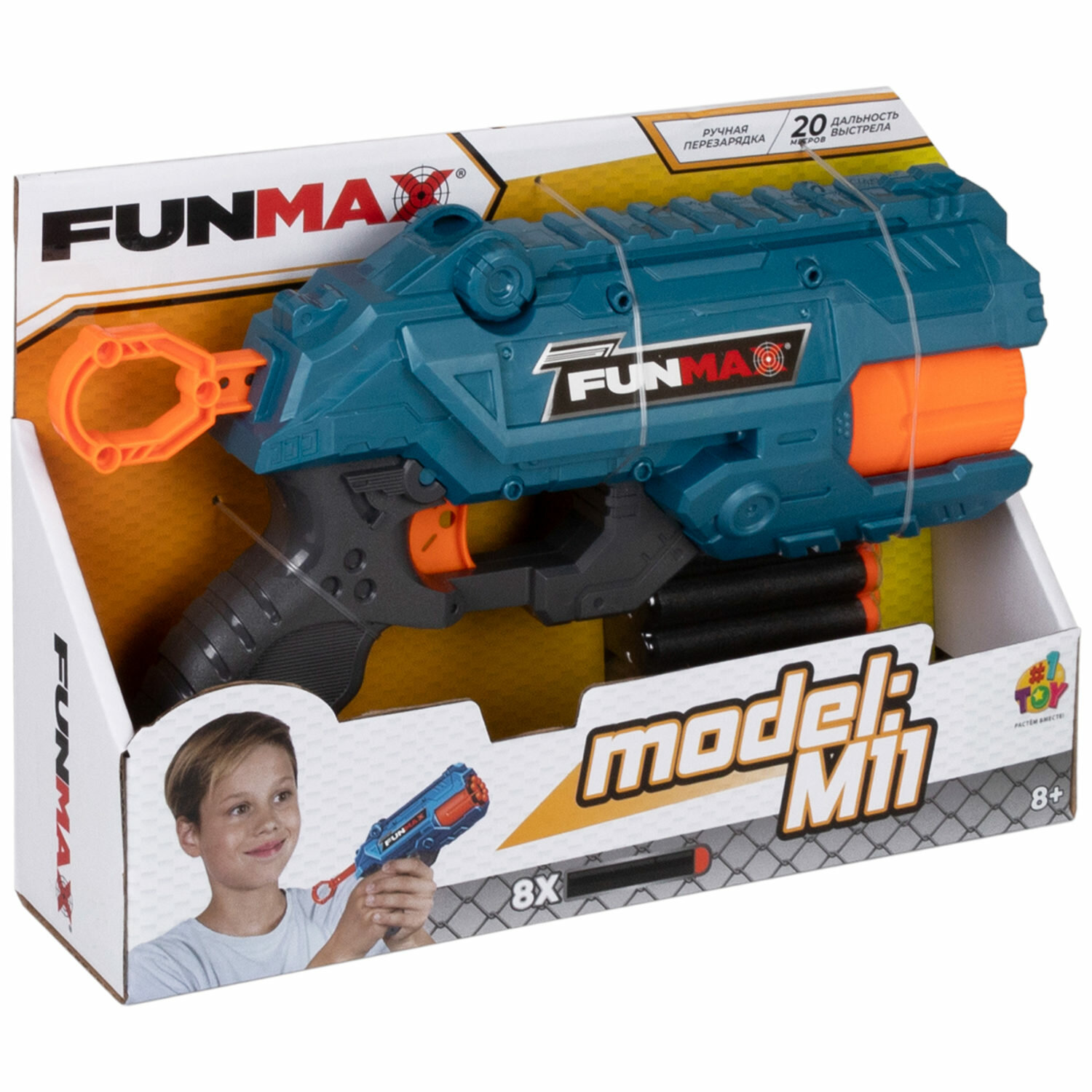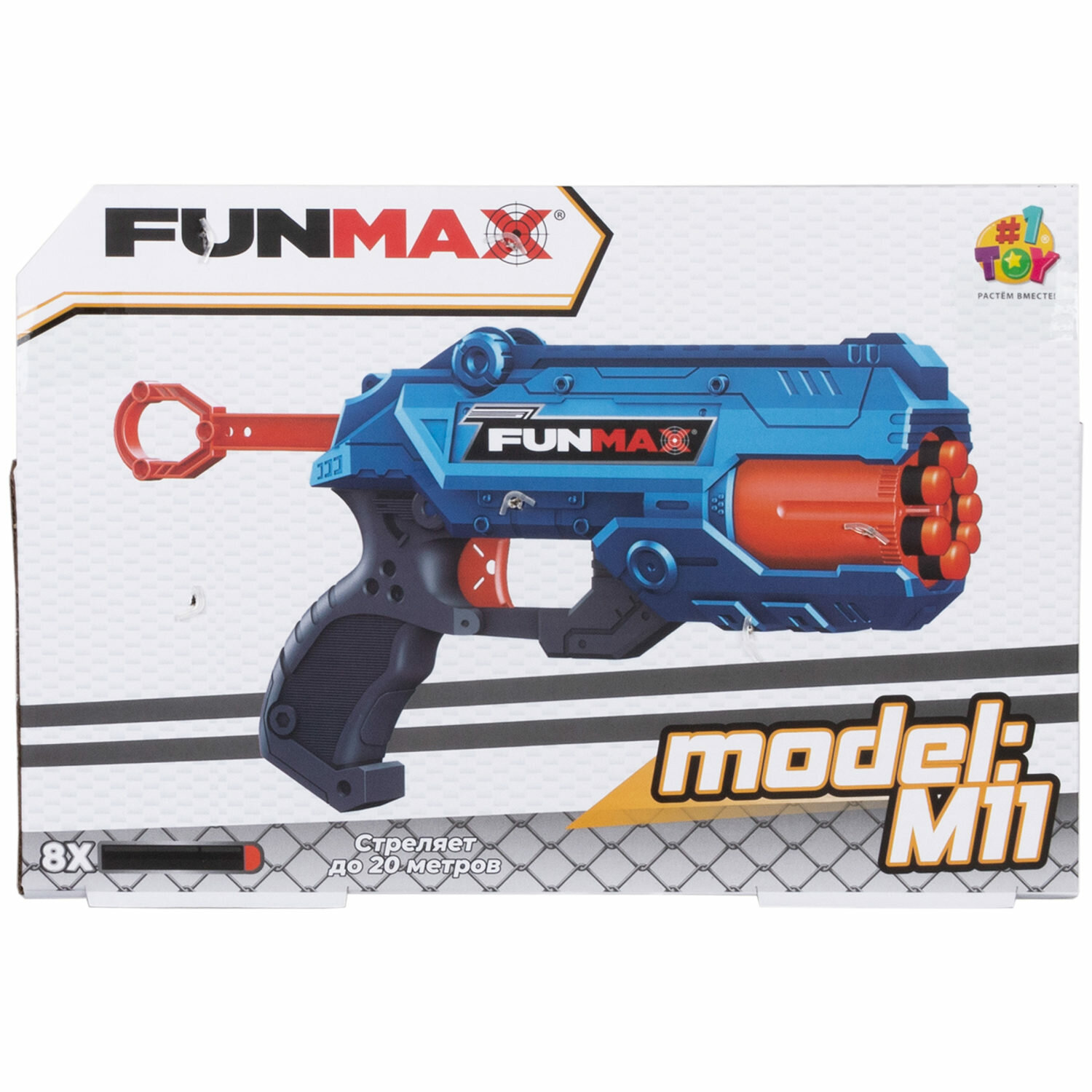 1toy Funmax "M11" бластер механический, 7 стволов, в комплекте 8 EVA снарядов интересное: