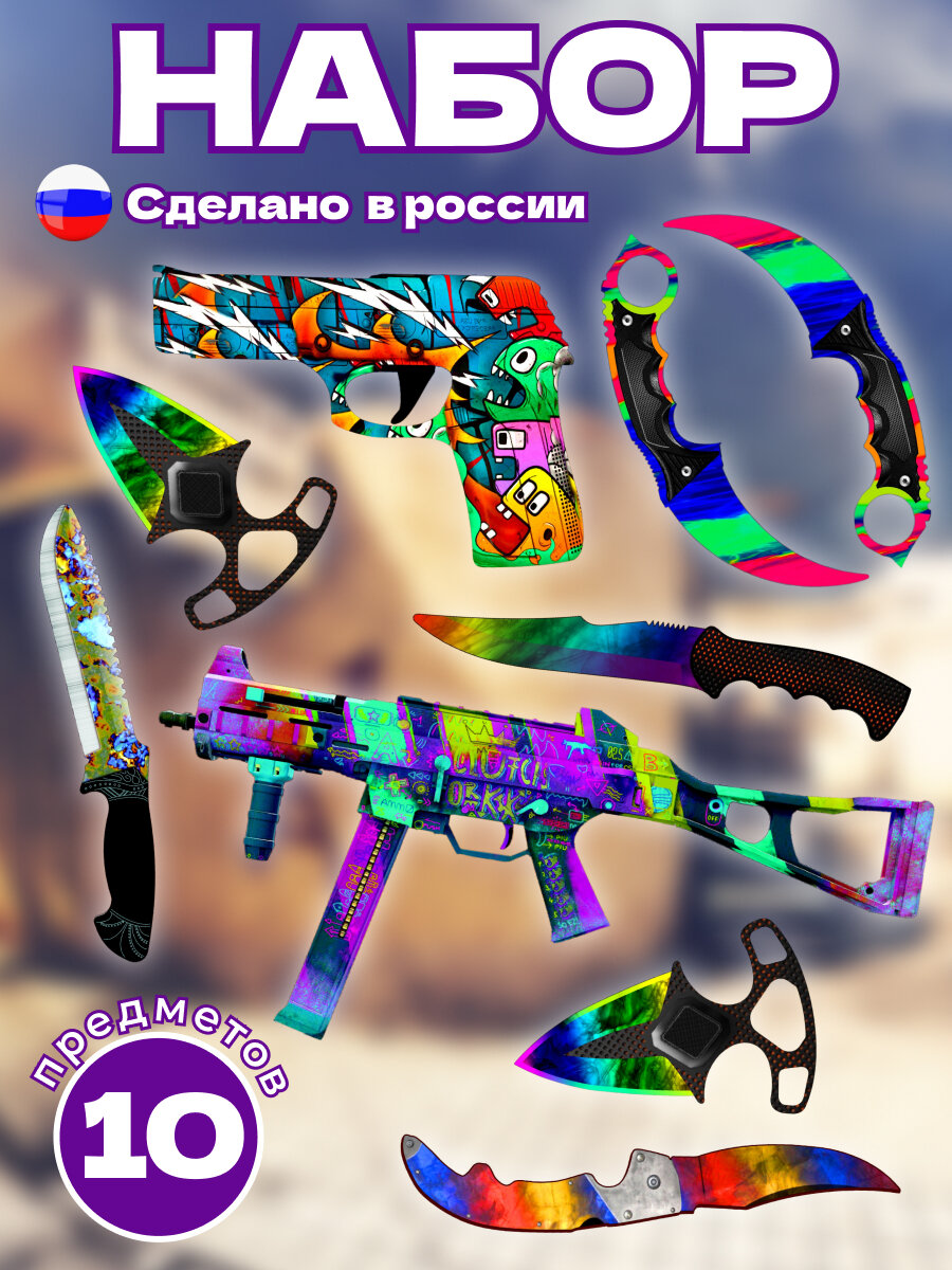 Игровой набор оружия MZR "Разборной", Автомат, пистолет резинкострел, 7 ножей, мишень. дерево/металл интересное: