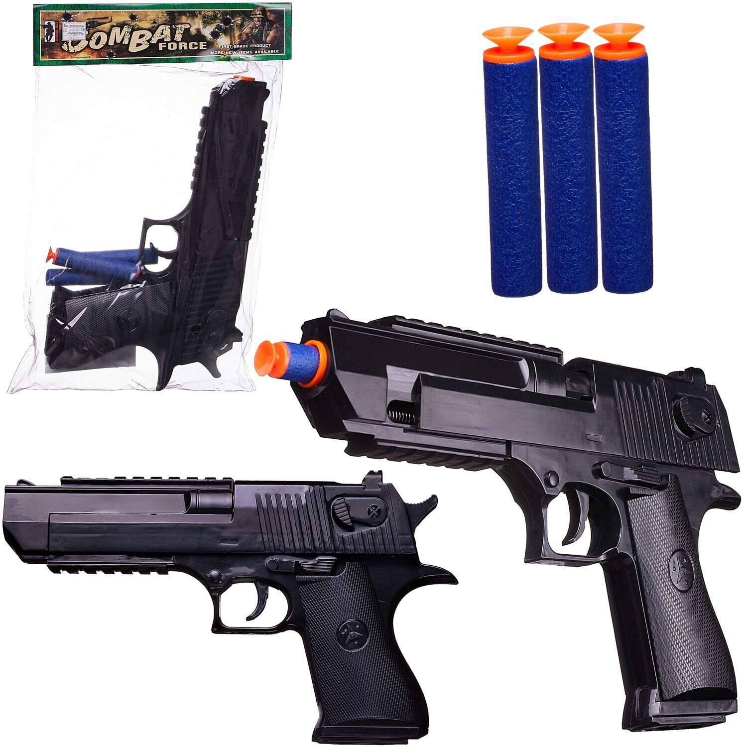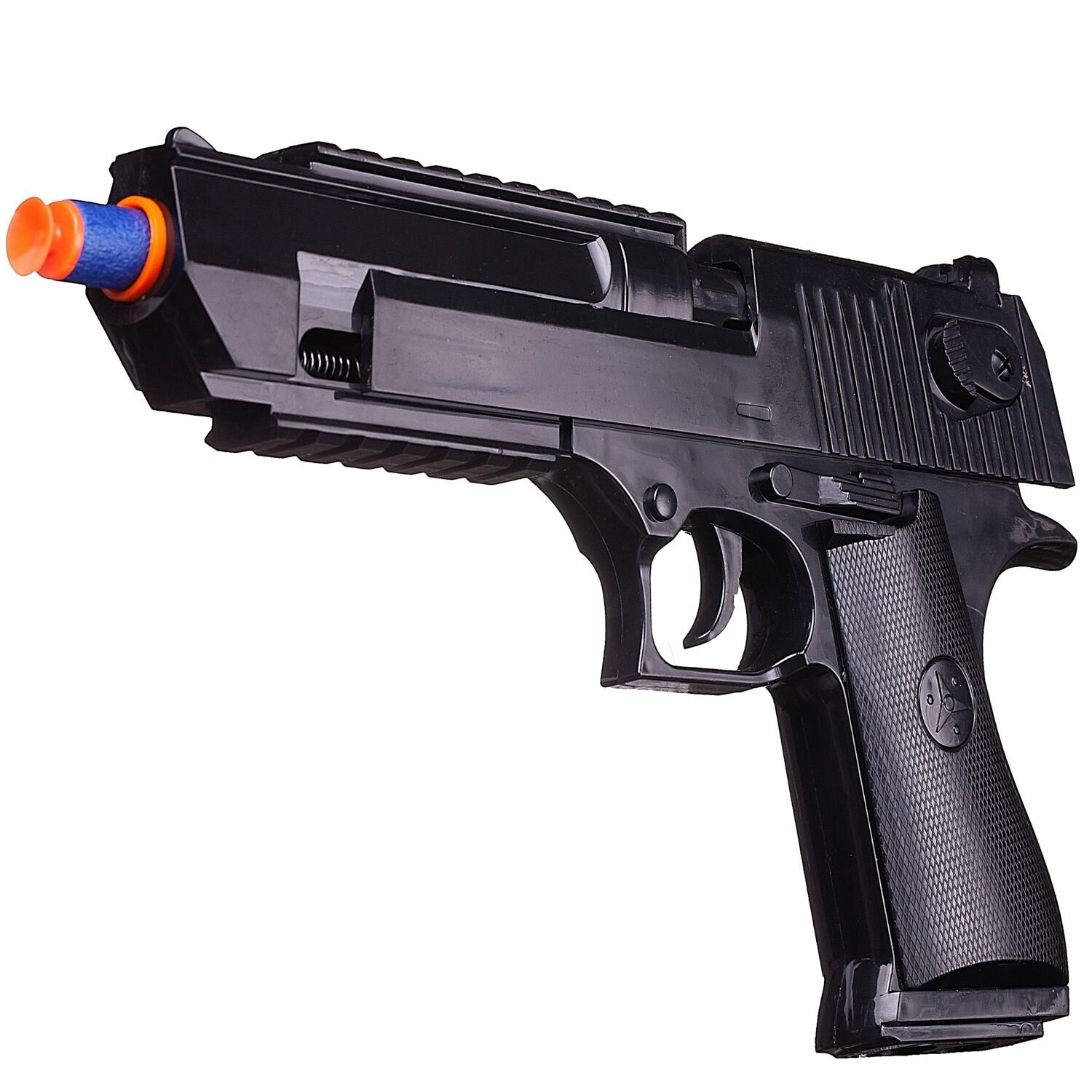 Пистолет Junfa черный с 3 мягкими пулями, 25х4х14 см WG-12816 интересное: