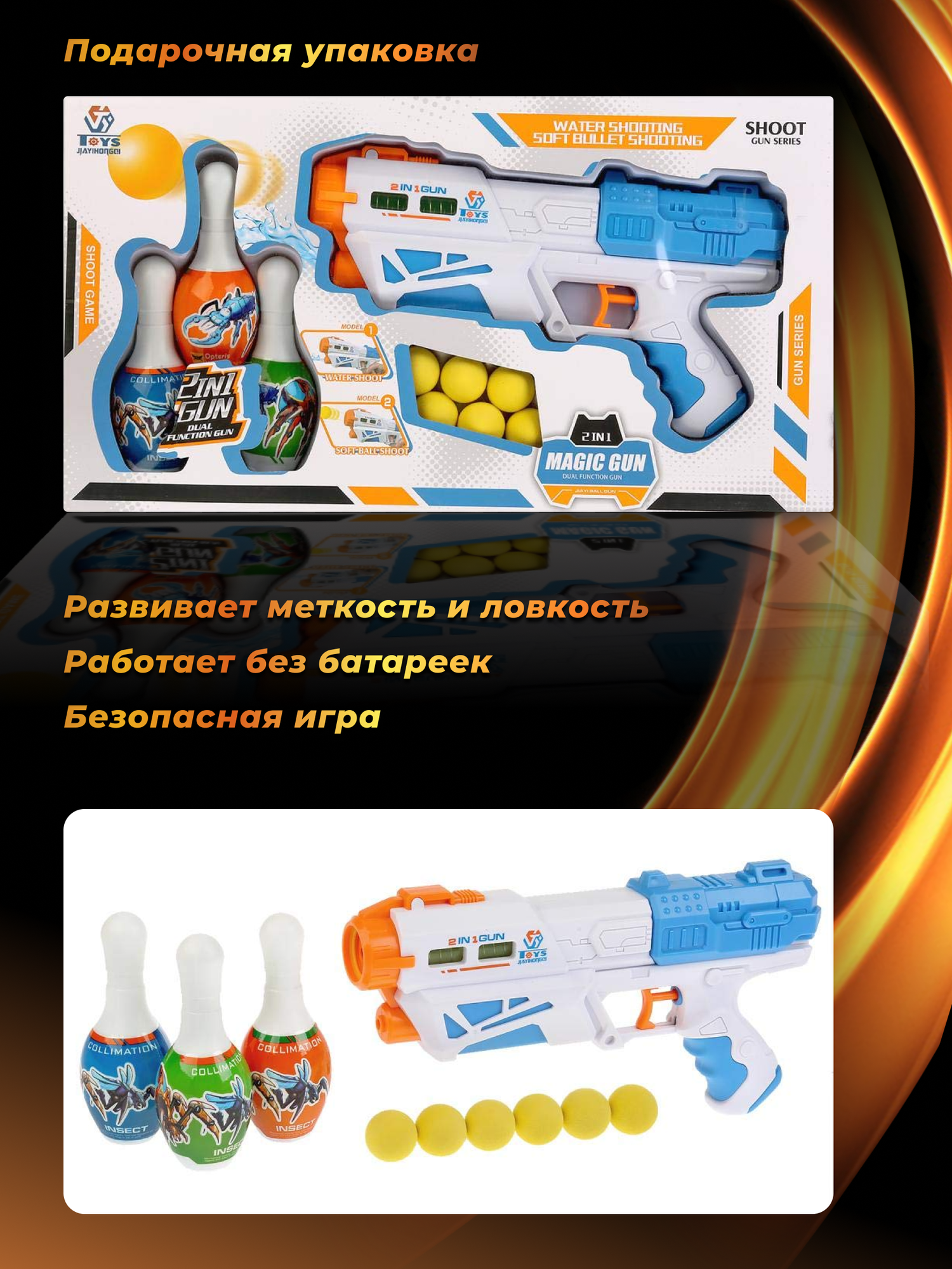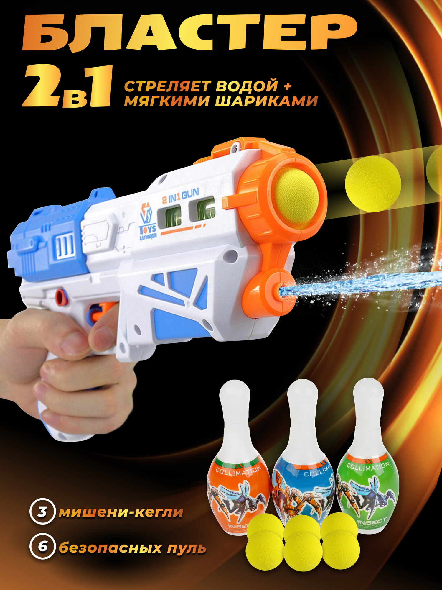 Игрушечное оружие бластер 2 в 1 водяной и с мягкими пулями шариками, подарок для мальчика, 2 цвета