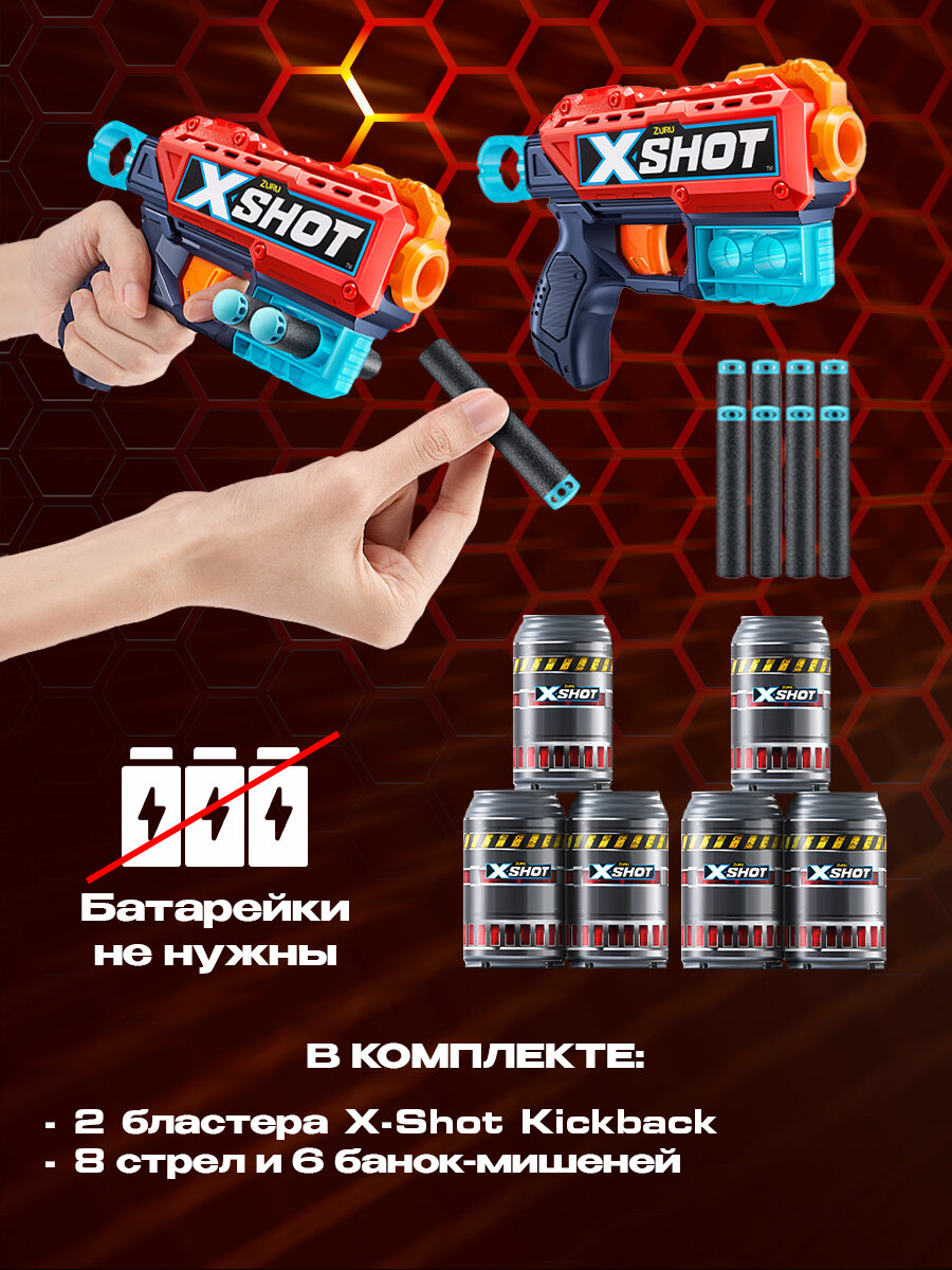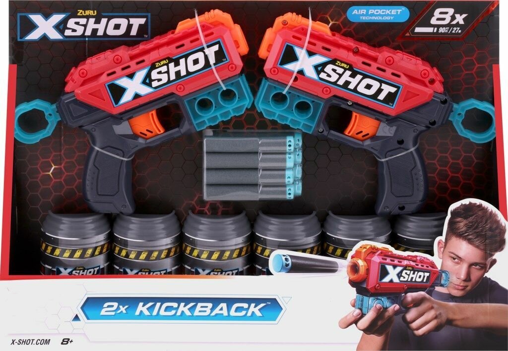 Набор из 2-бластеров Zuru X-shot double kickback, 36202 интересное: