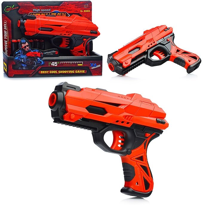 Бластер красно-черный в наборе с аксессуарами и 6 мягкими пулями FJ881 интересное: