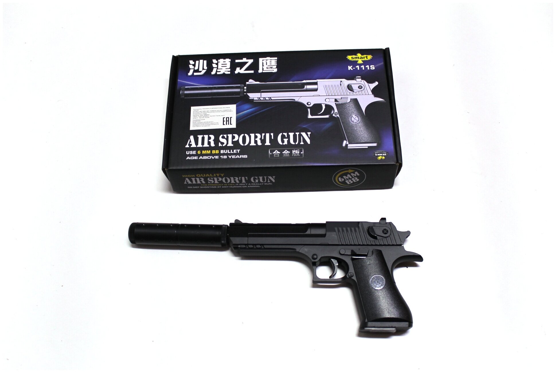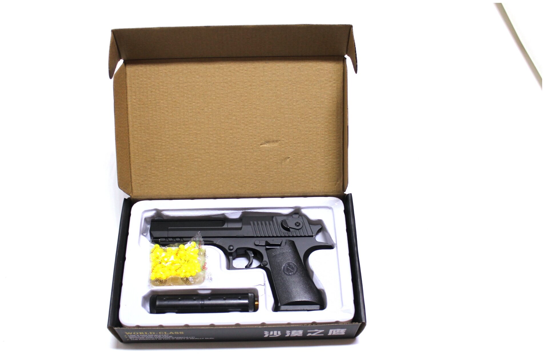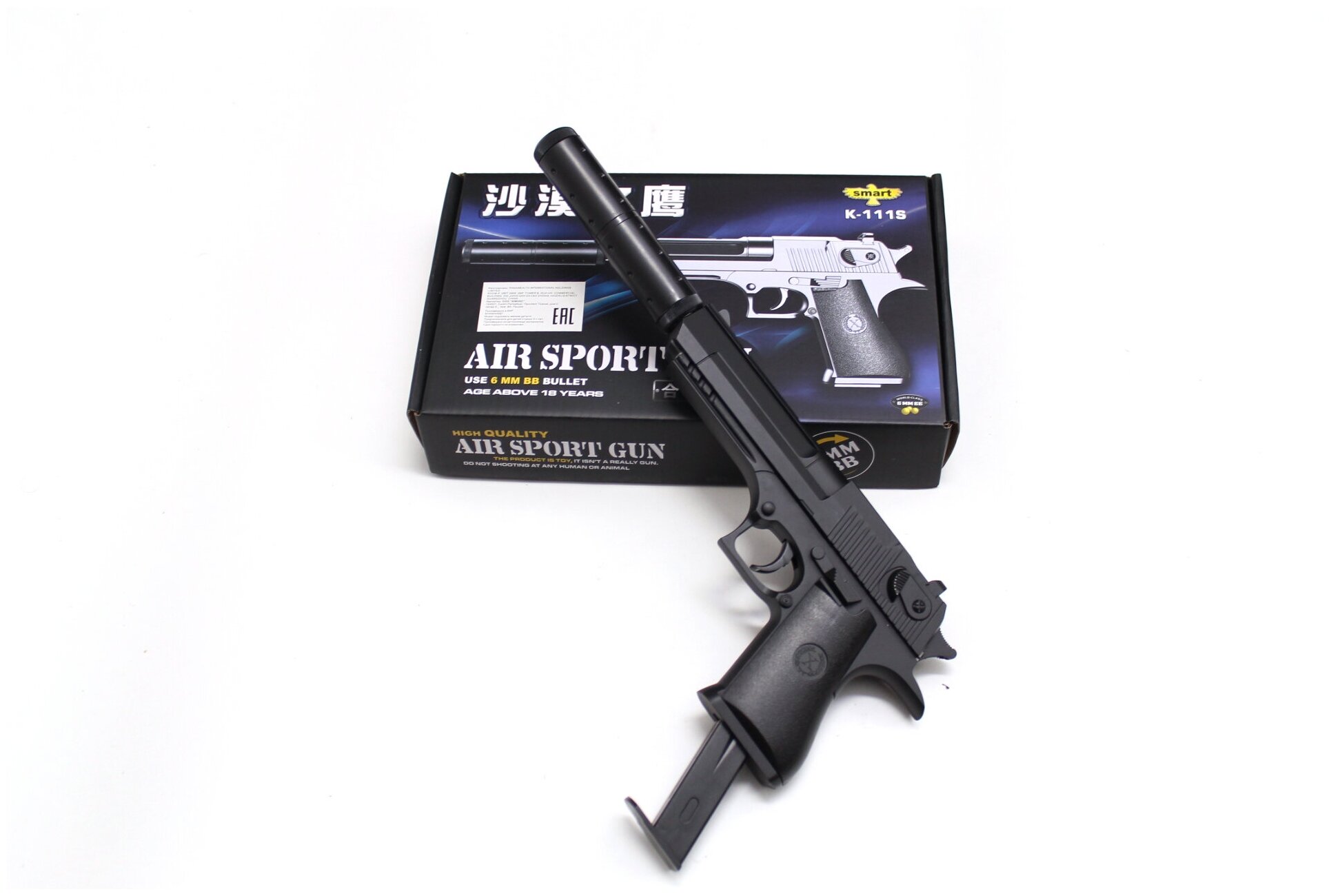 Детский пистолет на пульках Desert Eagle пневматический с глушителем металл. K-111S интересное: