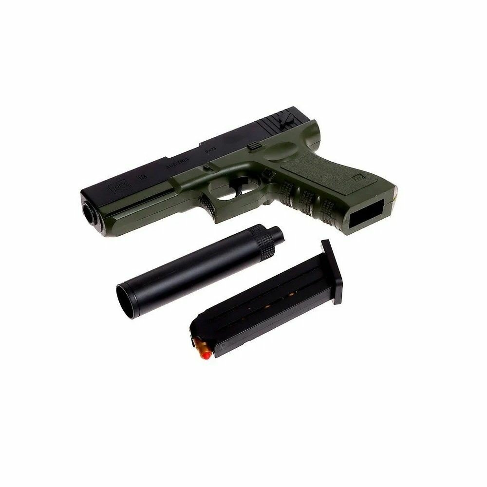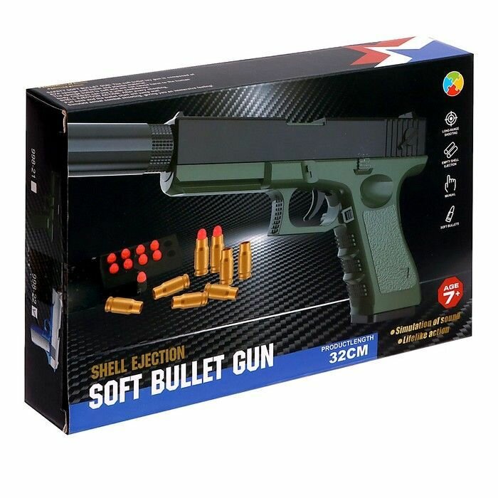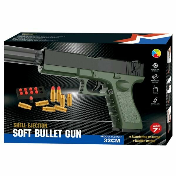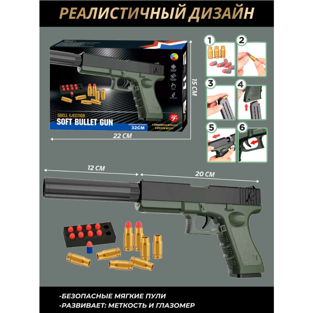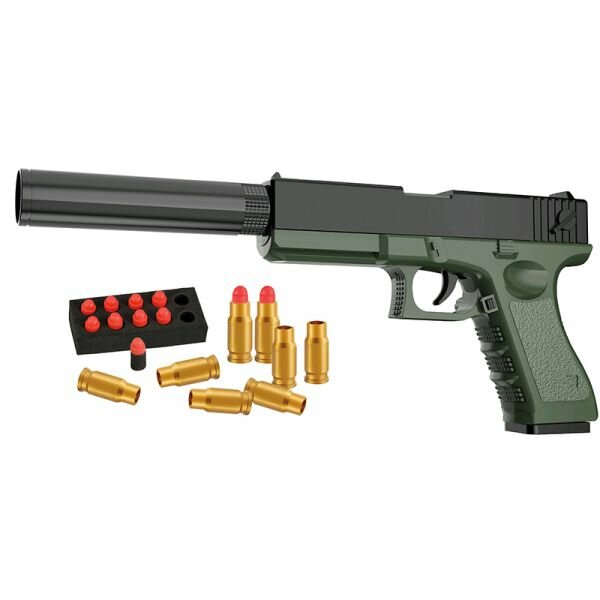 Игрушечное оружие детский пистолет Глок с мягкими пулями и вылетающими гильзами для мальчиков, съемный глушитель интересное: