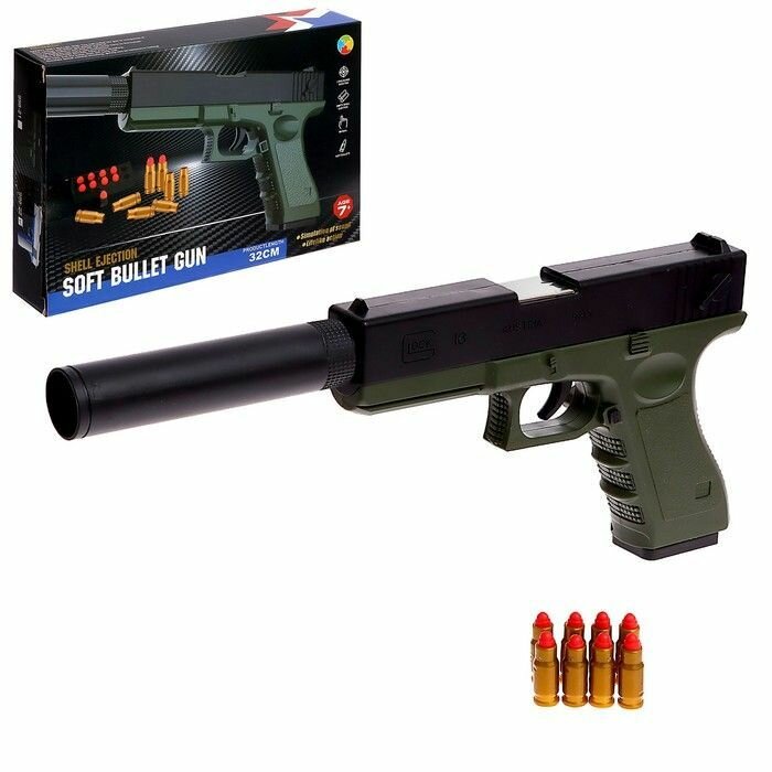Купить Игрушечное оружие детский пистолет Глок с мягкими пулями и вылетающими гильзами для мальчиков, съемный глушитель