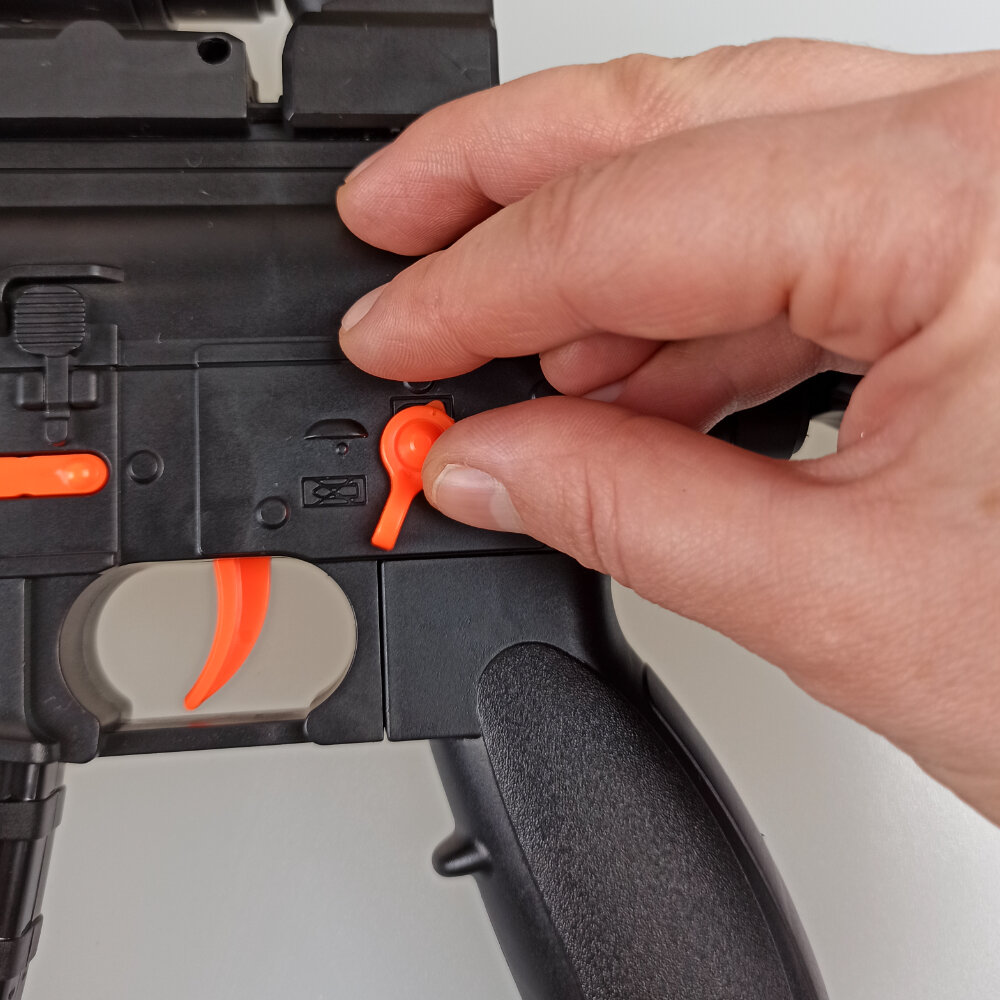 | Комплектация | автомат; резиновые пули 10шт.; мягкими пули 5шт; нож; фигурка солдатика; очки; рация. |