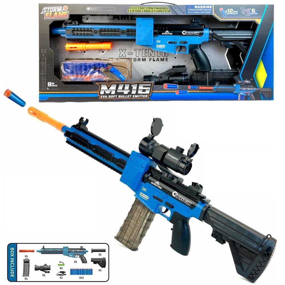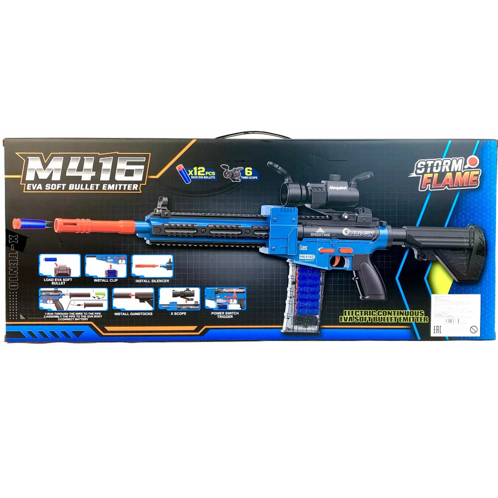 Игрушечный Автомат М416 79 х 25 см, с оптическим прицелом и глушителем с 10 мягкими пулями, со звуком, детское оружие на аккумуляторе, Н222