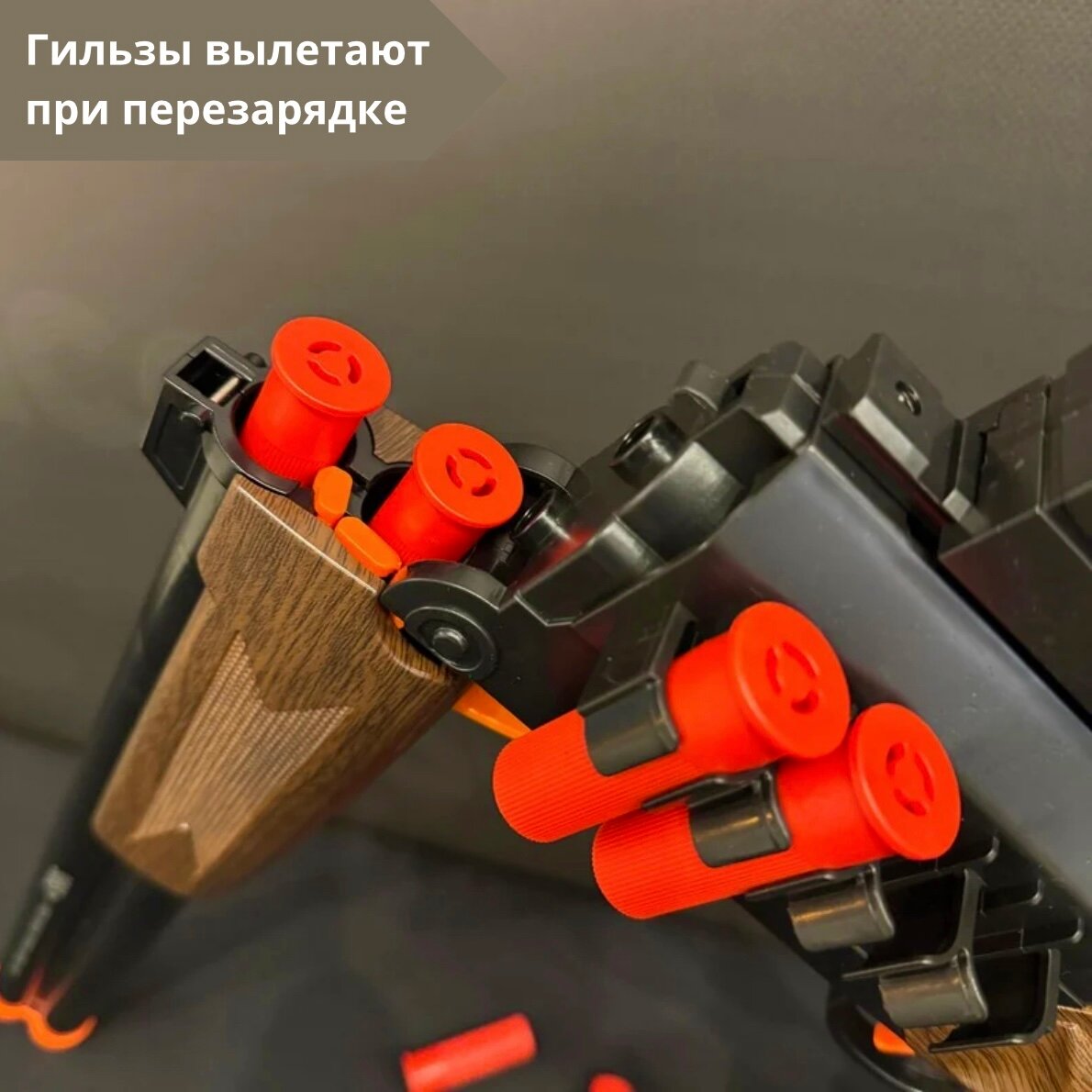 Игрушечный Дробовик двуствольный Обрез с пулями и гильзами серый + чехол