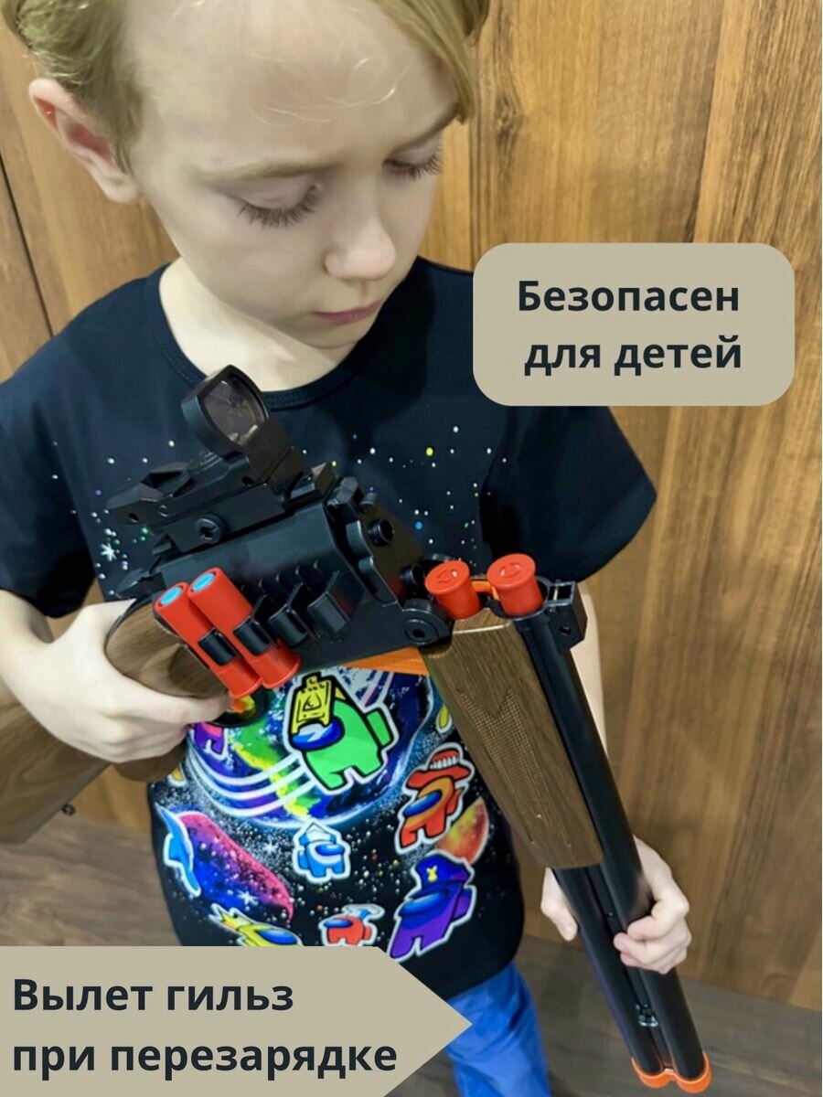 Детское охотничье ружье с коллиматорным прицелом, пулями, дробью и вылетающими гильзами + чехол