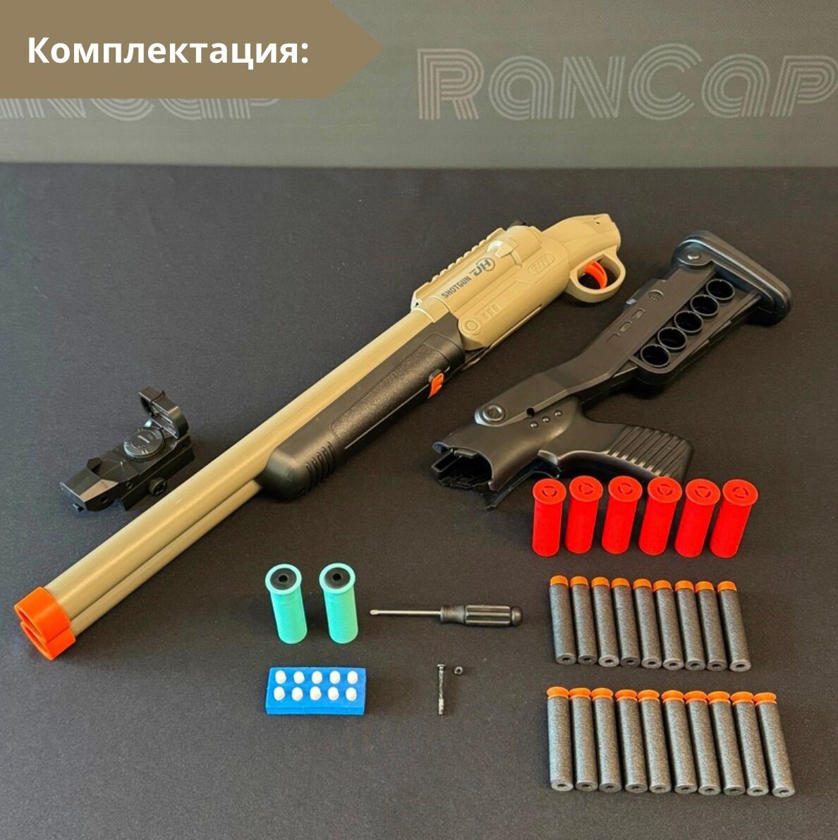 Игрушечный дробовик RanCap с лазерным прицелом мягкими пулями и гильзами