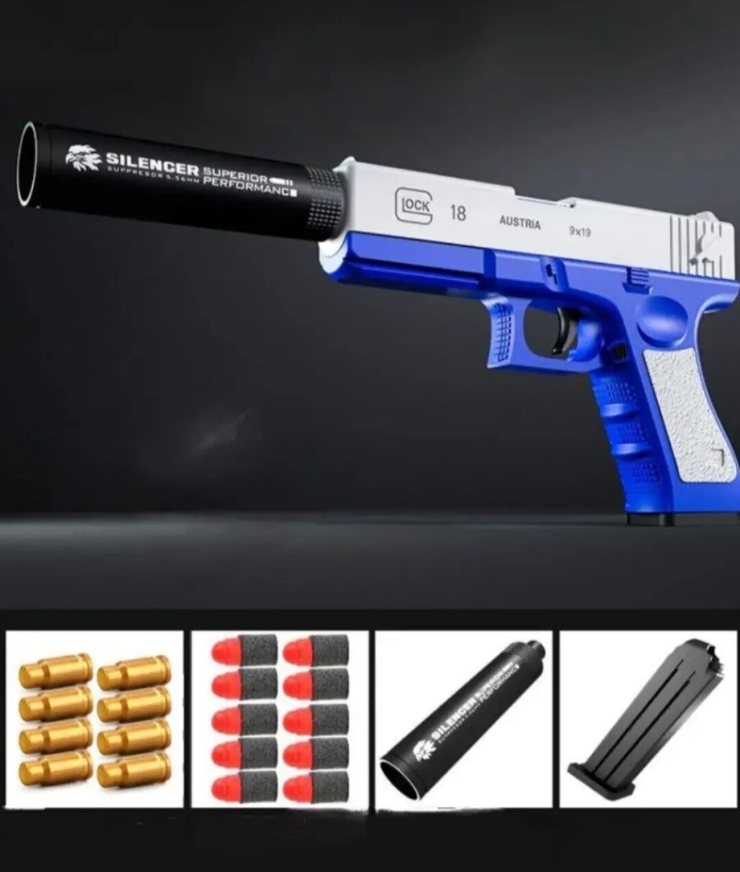 | Комплектация | Пистолет, глушитель, пули, гильзы |