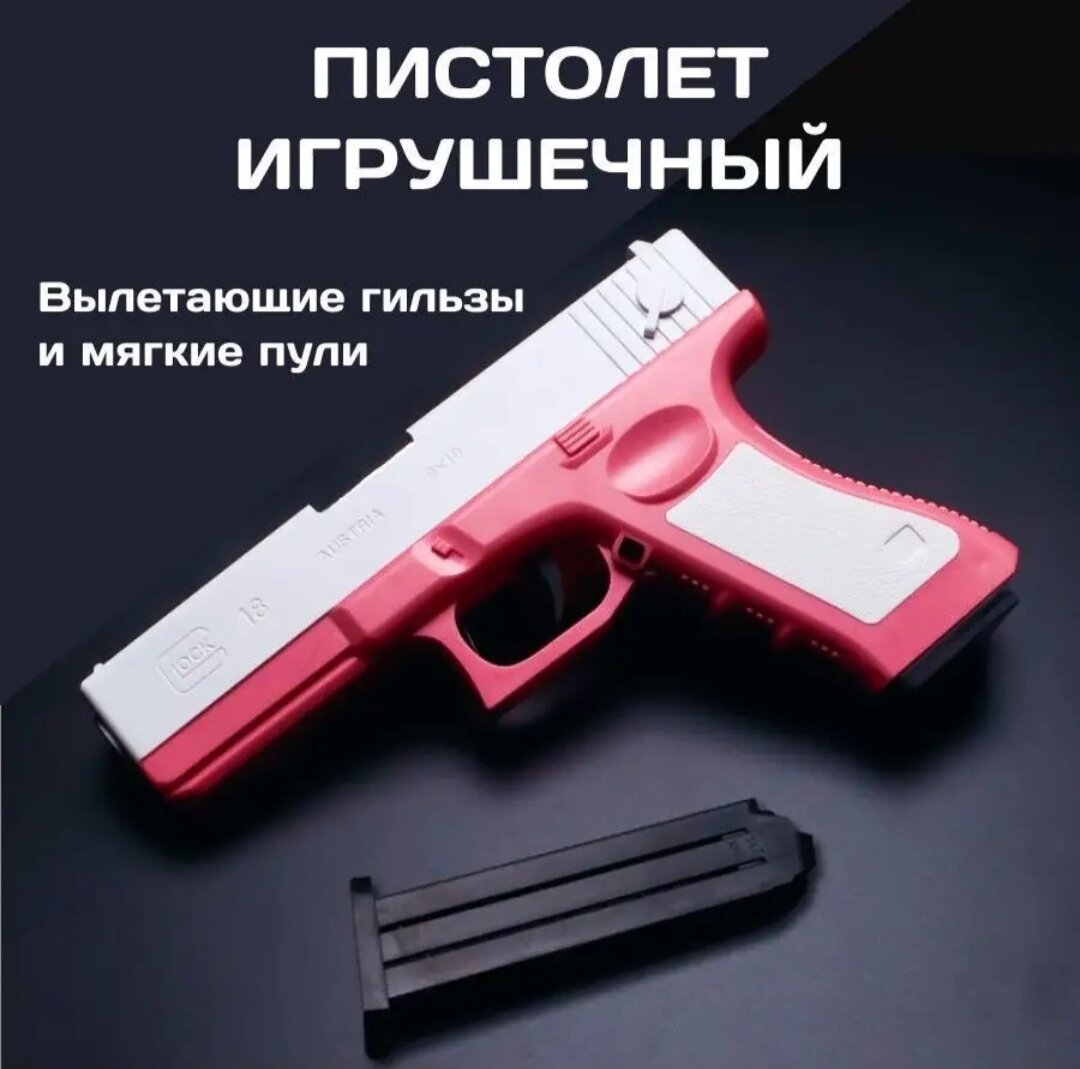 Купить Оружие / игрушечный пистолет с мягкими пулями и гильзами "Элитный спецназ / 8 гильз / 10 пулек / цвет розовый