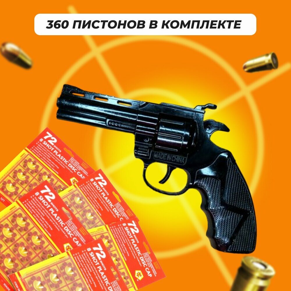 Пистолет металлический с кобурой, пугач, черный 360 пистонов в комплекте интересное: