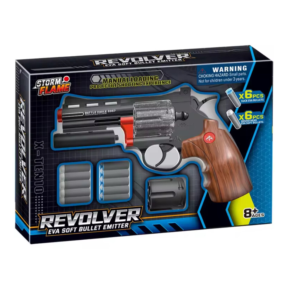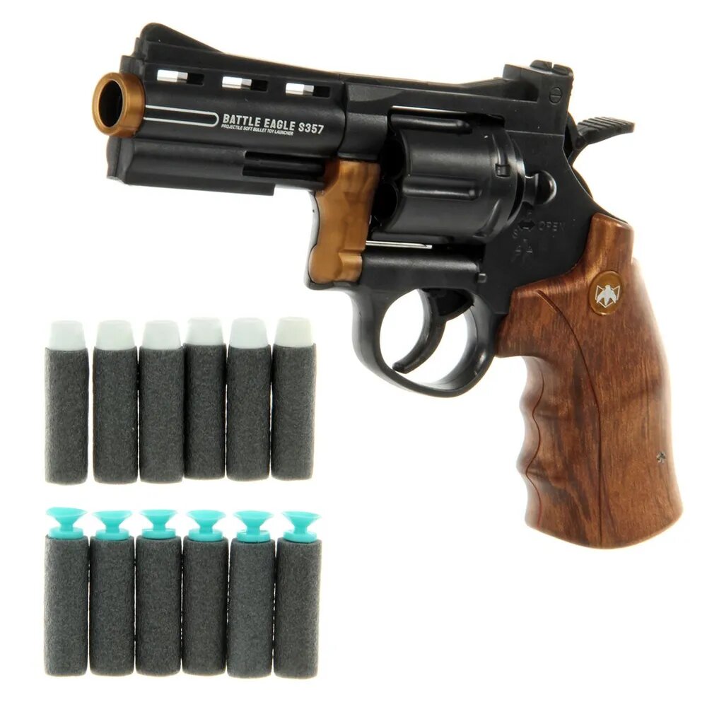 Купить Игрушечное оружие пистолет револьвер 23 см для мальчиков, 12 мягких пуль, лазерный прицел, сменный барабан