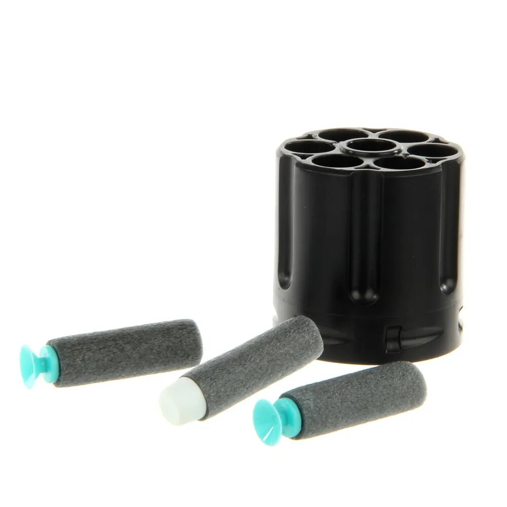 | Комплектация | - револьвер 23 х 4 х 15 см; - прицел диаметром 2 см; - мягкие пули с присосками 3,5 х 1 см - 6 шт; - мягкие патроны без присосок 3,5 х 1 см - 6 шт; - барабан для патронов 4 х 4 см - 2 шт. |