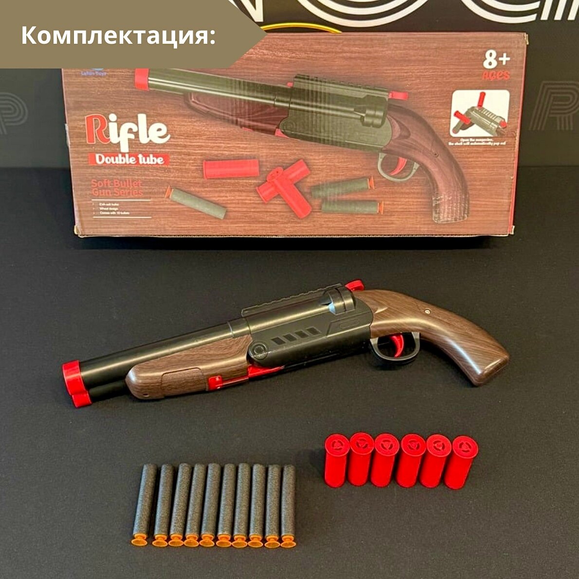 | Эффекты | Удобный размер оружия для детей / Яркий и реалистичный дизайн / выстрел дуплетом и по одной |