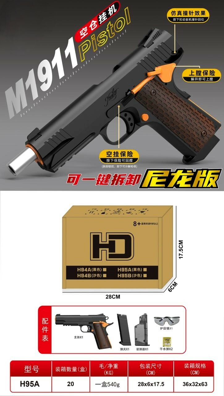 Игрушечный пистолет "M1911" HC TOYS, от аккумулятора, 28x17x6 см интересное: