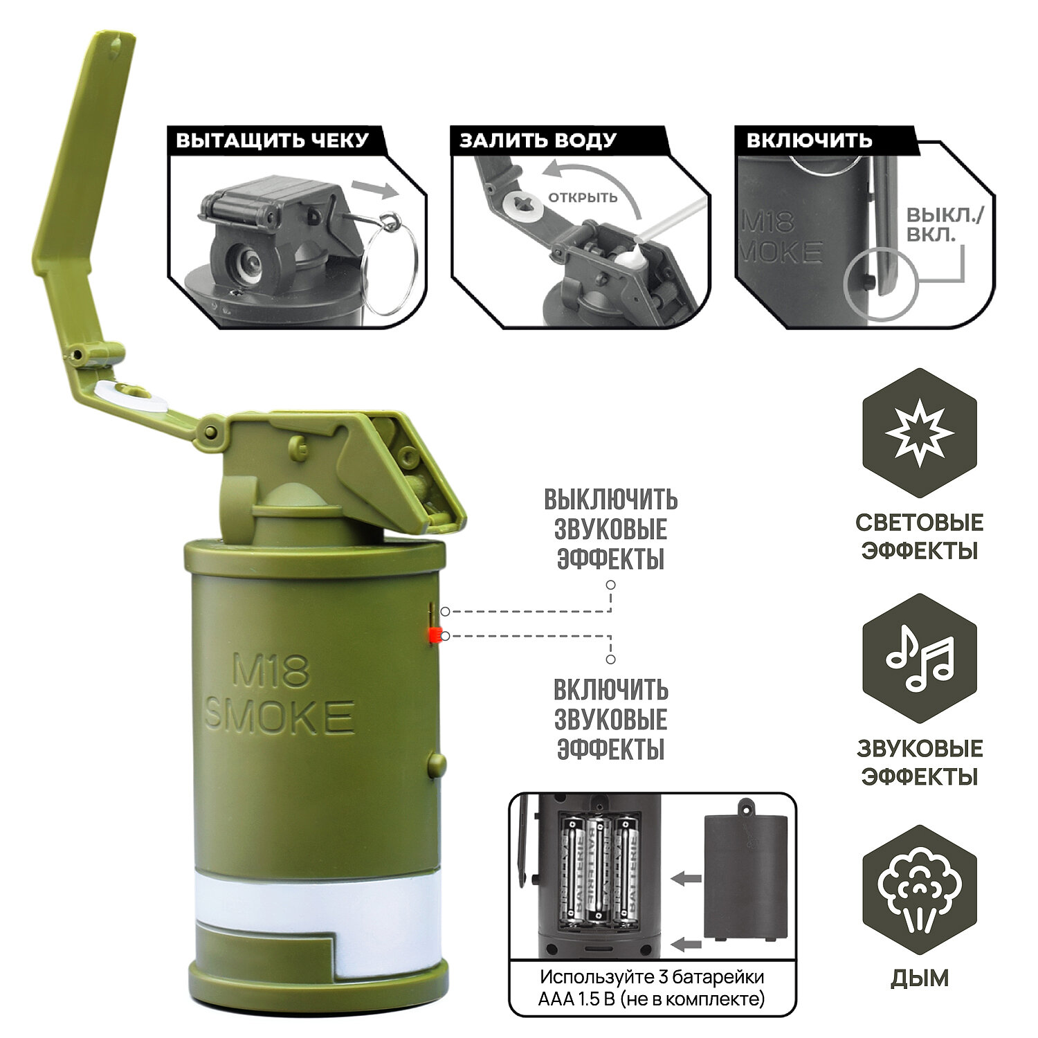 Купить Граната игрушечная с холодным паром, световые и звуковые эффекты "М18 Smoke"