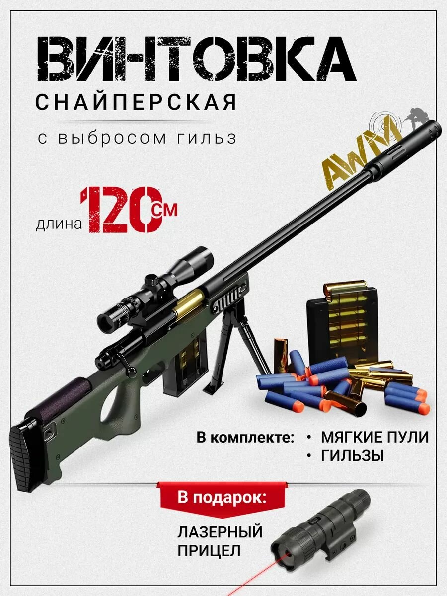 Снайперская Винтовка HC TOYS "AWM", с вылетающими гильзами, с оптическим прицелом интересное: