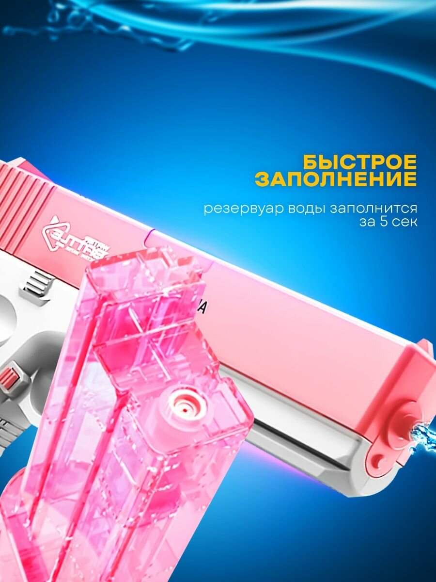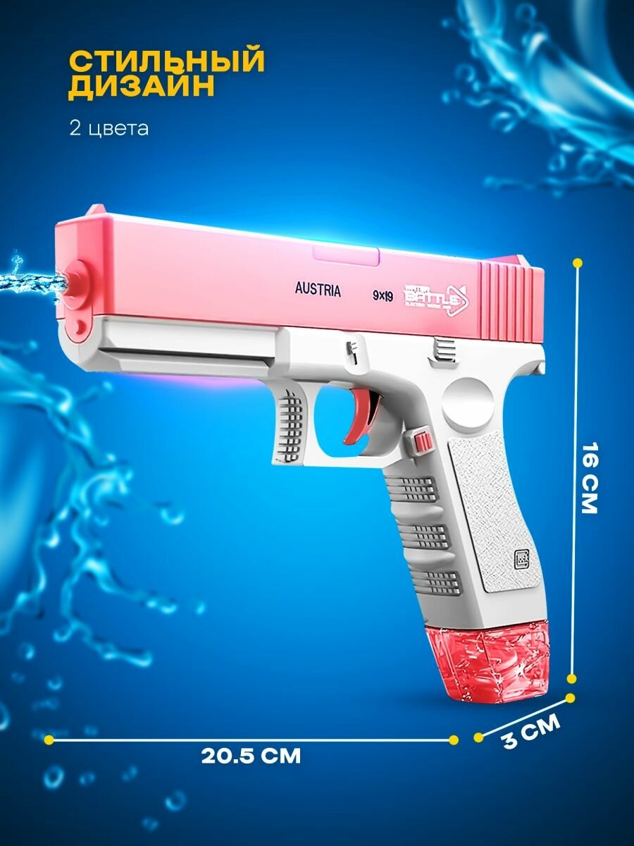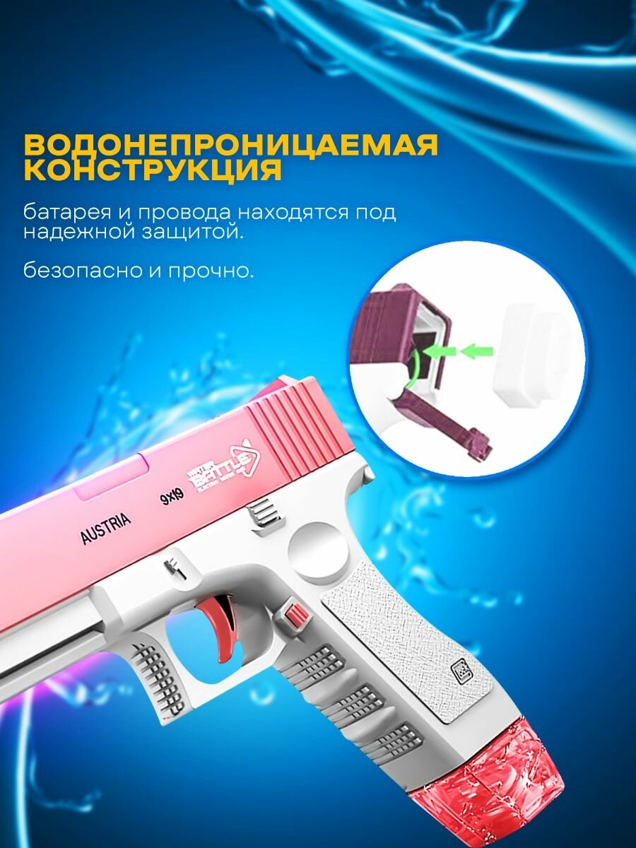 Водяной пистолет Glock, дальность поражения 10м, питание от аккумулятора, розовый интересное: