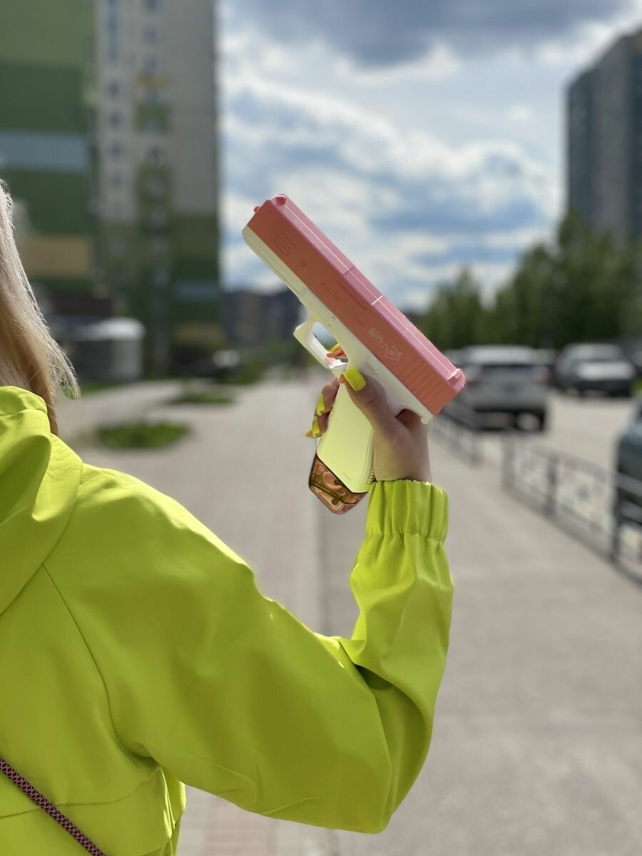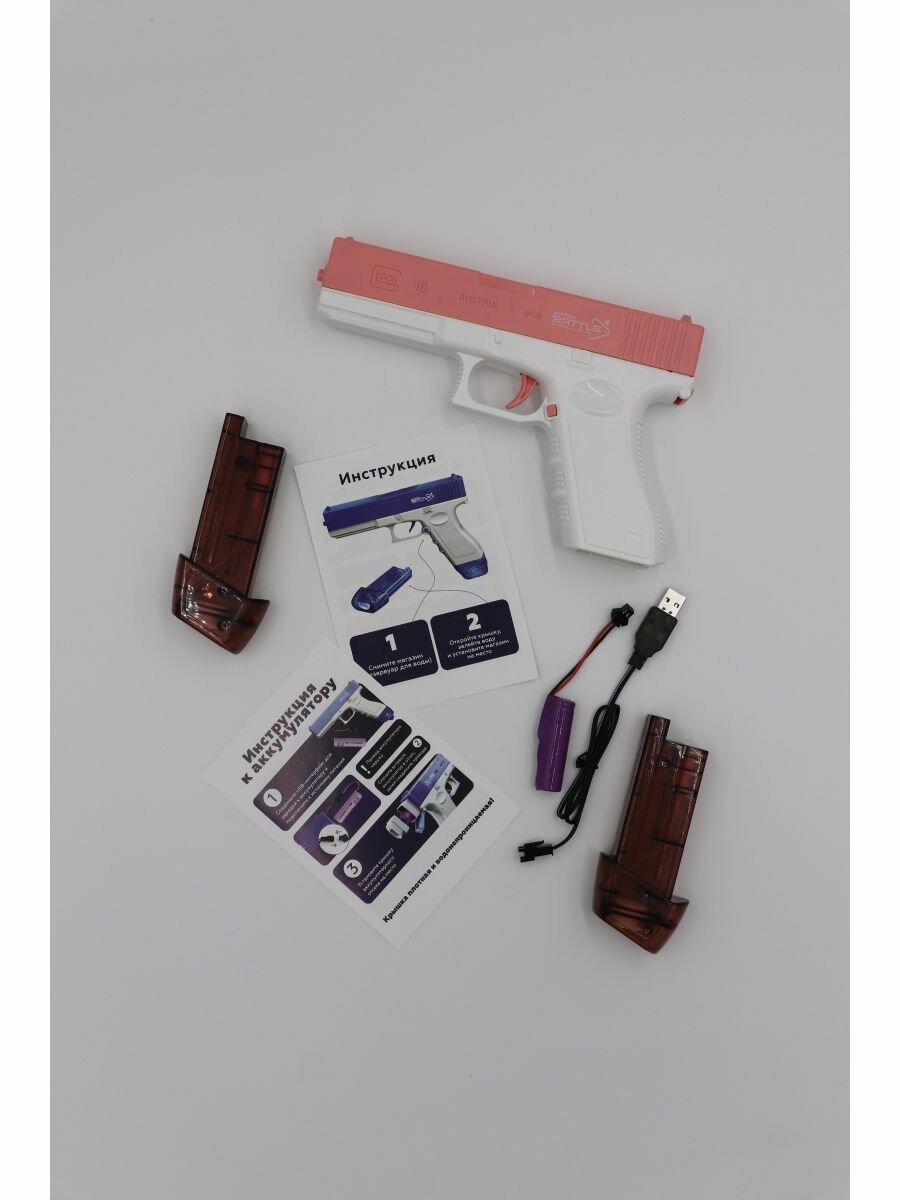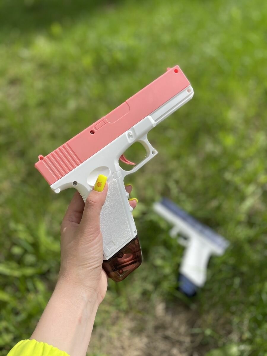 Водяной пистолет Glock, дальность поражения 10м, питание от аккумулятора, розовый интересное: