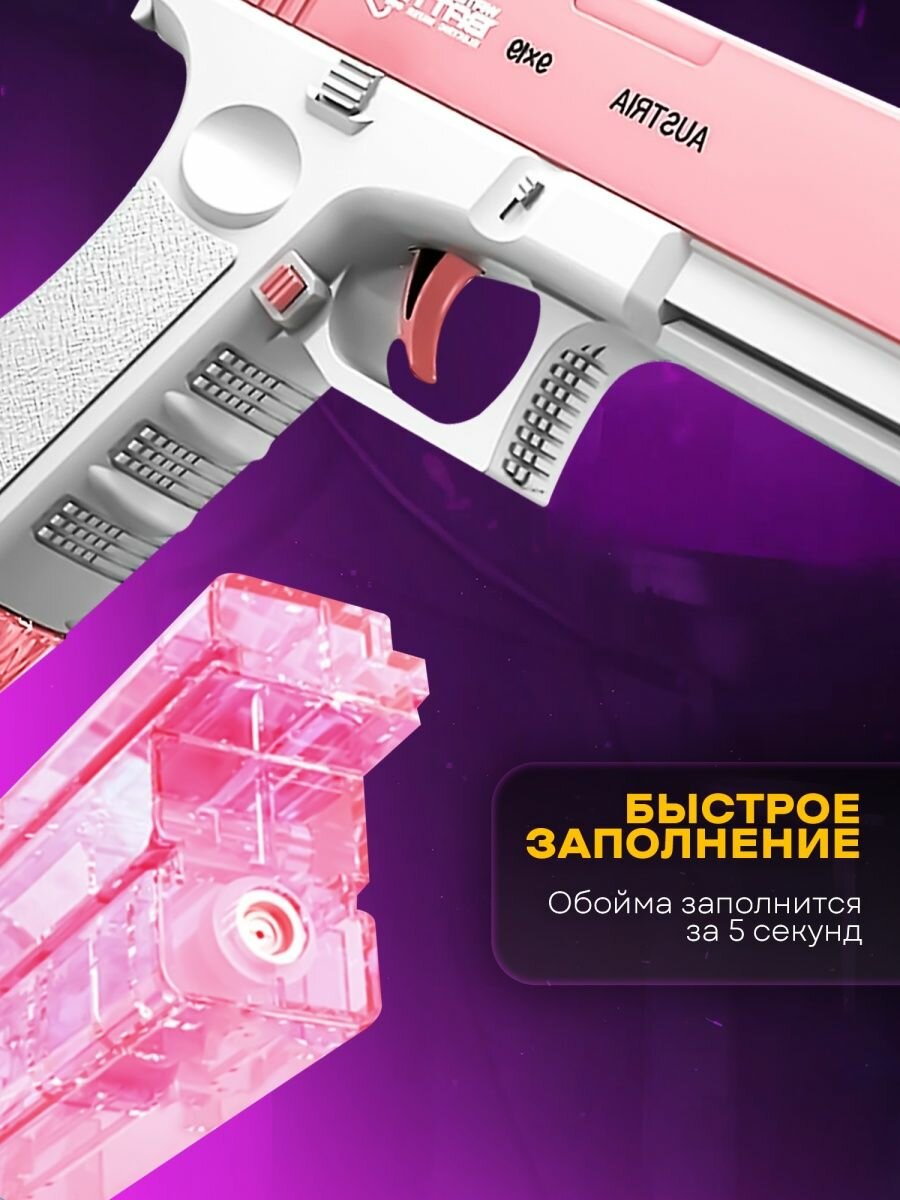 Водный пистолет WaterGun Glok-18, электрический, синий, дальность поражения до 10м